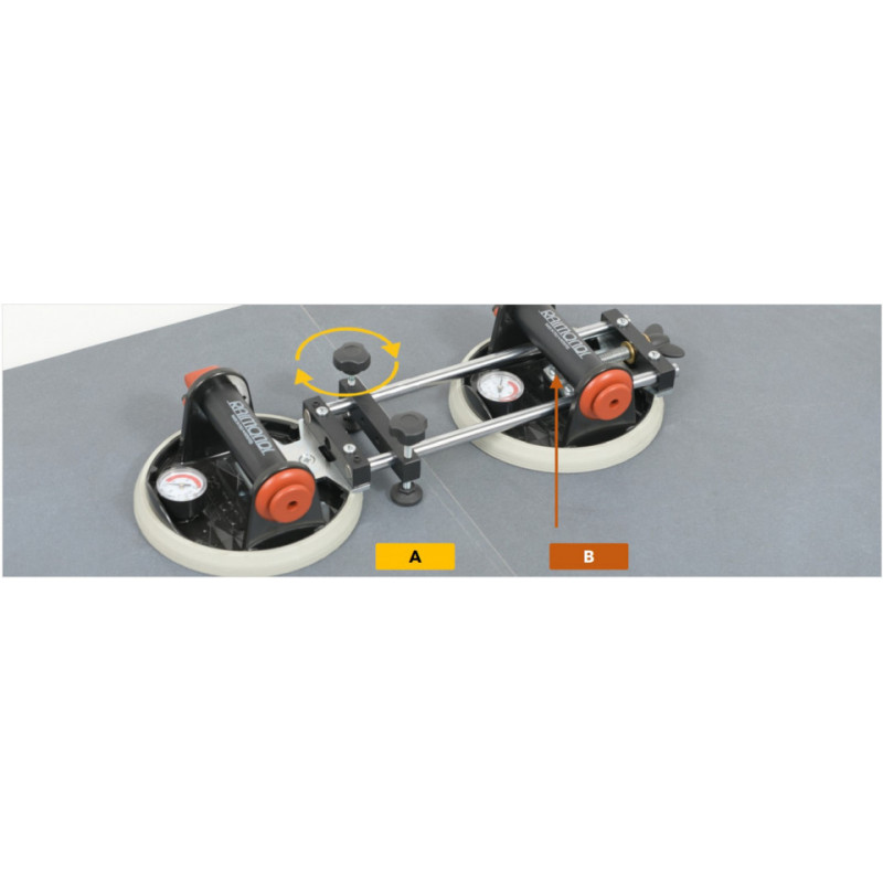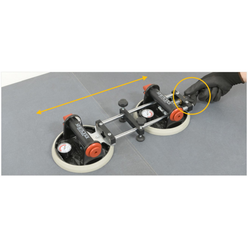 Echipat cu 2 ventuze cu vid RV175 (Ø 175 mm – 6 7/8”) cu tampon de cauciuc fara pete, ideal pentru plăci cu finisaj texturat sau neted.