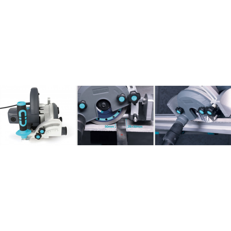 Sistemul de ghidaje cu sine si cleme de prindere este 2 in 1, astfel incat poate fi folosit atât cu sistemul electric cât și cu sistemul de taiere manual LFMC5!
