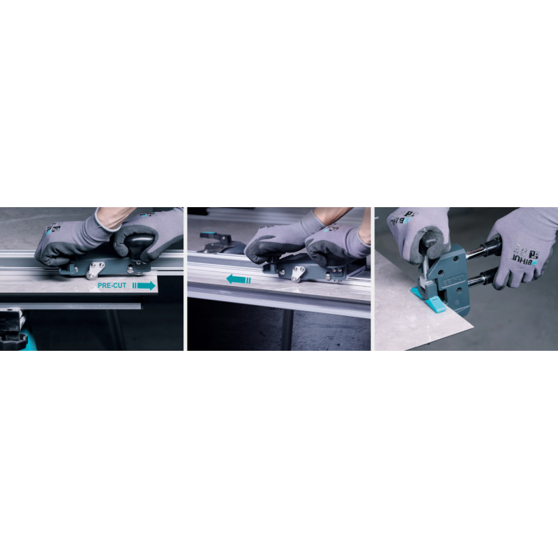 Sistemul de ghidaje cu sine si cleme de prindere este 2 in 1, astfel incat poate fi folosit atât cu sistemul electric cât și cu sistemul de taiere manual!