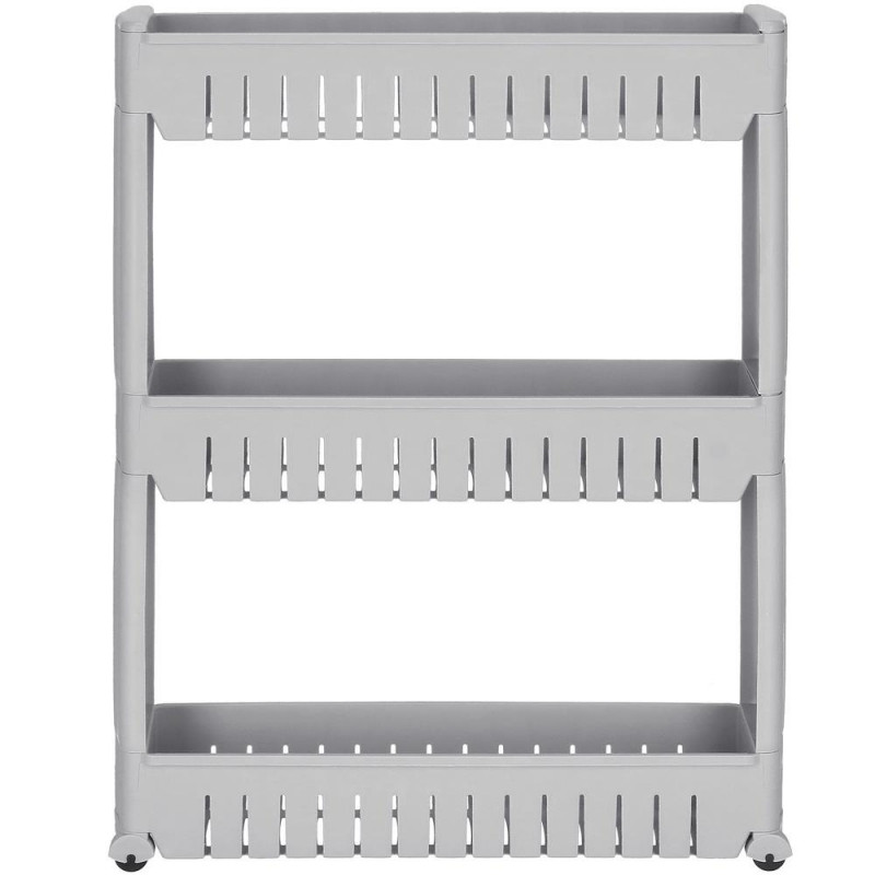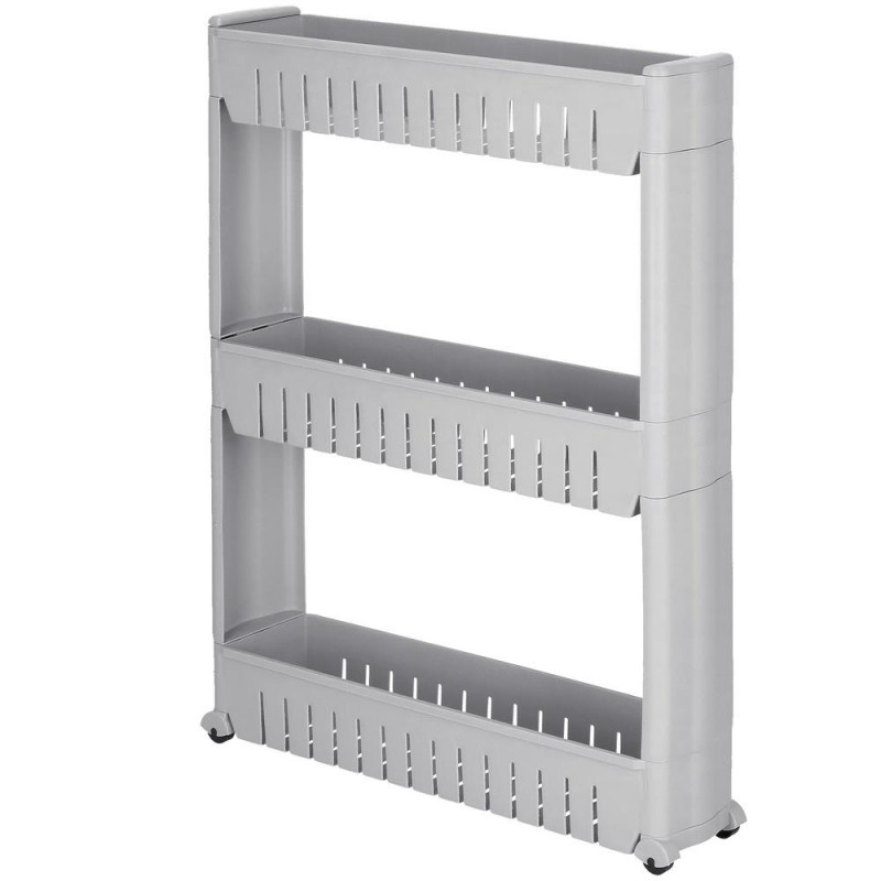 Greutatea raftului pliat: 1,15 kg Un dulap mobil pe roti va va ajuta sa utilizati spatii inguste in baie, bucatarie, camara sau alta camera. Trei rafturi spatioase vor asigura ca toate lucrurile esentiale sunt intotdeauna la indemana. Fabricat din materiale de cea mai buna calitate, durabil si rezistent la temperaturi ridicate, va servi foarte mult timp. Rack-ul pe roti este perfect pentru multe intrebuintari. Va depozita produsele cosmetice, balsamul de rufe, detergentul de spalat sau o multime de alte lucruri. Pe de alta parte, in bucatarie, va fi minunat pentru amenajarea unui loc pentru bauturi sau alte produse alimentare. Asezandu-l in camera copiilor, rafturile vor gazdui ursuleti de plus si alte jucarii. Datorita multifunctionalitatii acestui dulap, puteti decide singur unde va va ajuta sa utilizati practic un spatiu ingust. Patru roti faciliteaza mutarea raftului. Datorita acestui fapt, schimbarea locului este foarte usoara. In plus, plierea si demontarea acestuia sunt intuitive. Pentru a-l putea folosi, este suficient sa-l pliati in trei pasi.