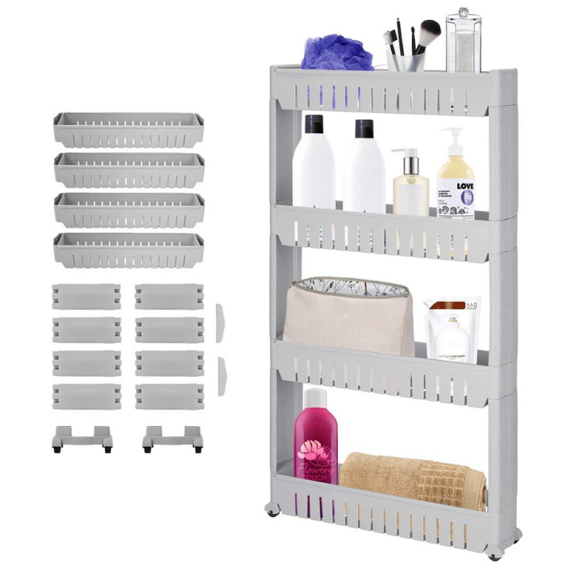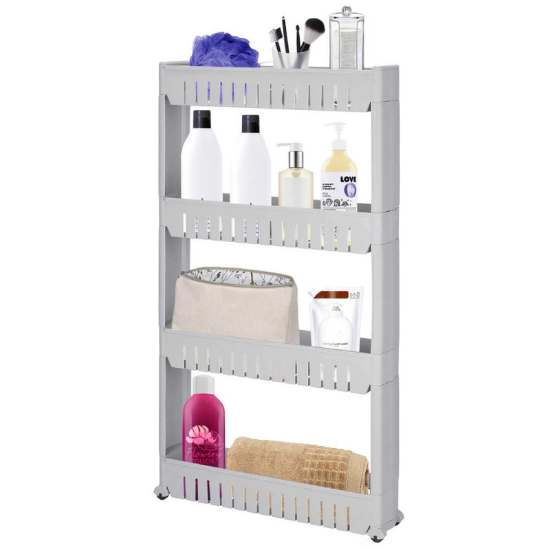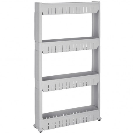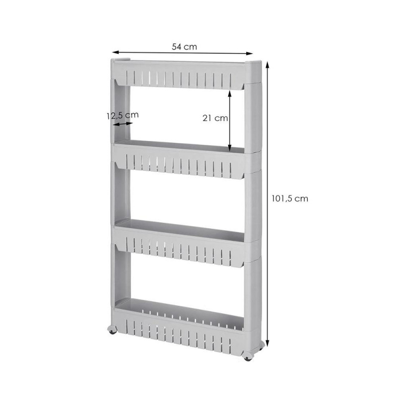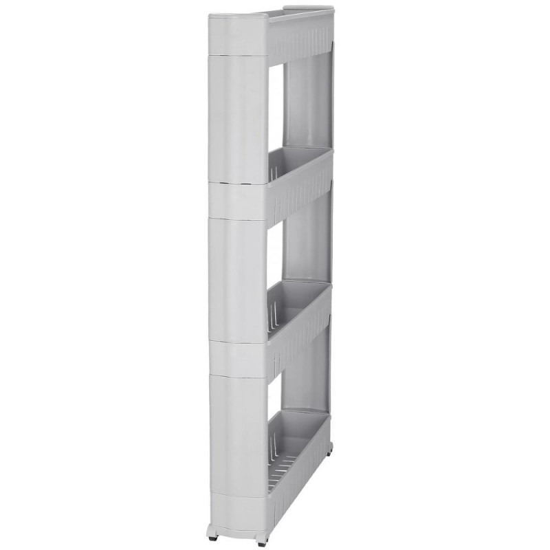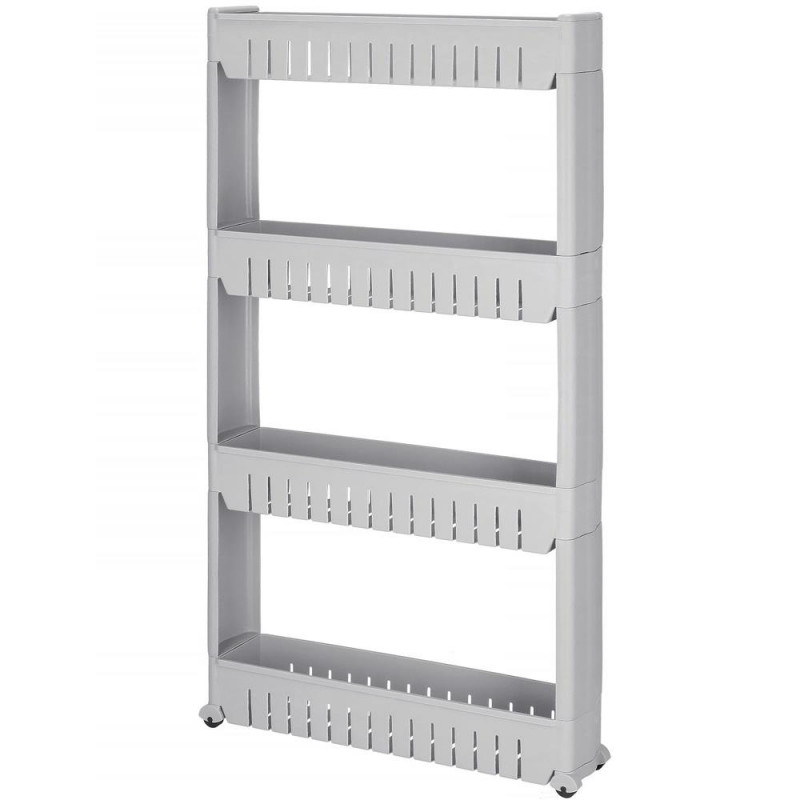 Scurta descriere: Etajera verticala cu 4 polite, realizata din plastic rezistent, ideala pentru organizarea obiectelor in spatii inguste. Designul compact permite amplasarea in baie, bucatarie sau camara, oferind acces facil si ordine eficienta.