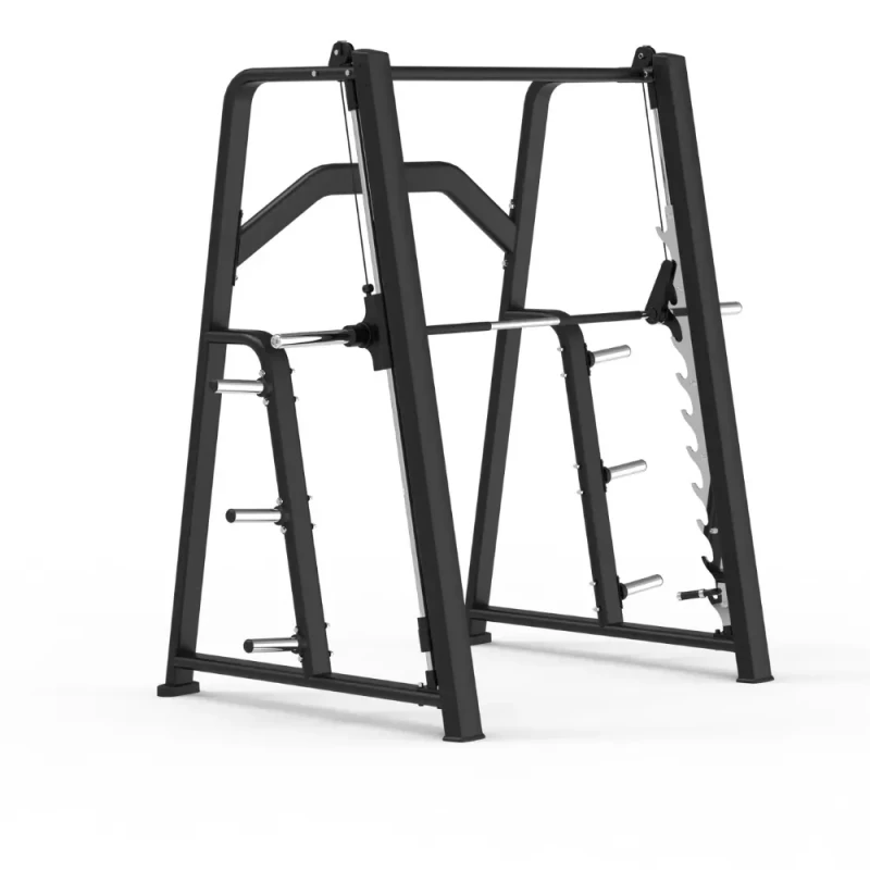 TheWay Fitness XH‑020 Smith Machine este un aparat profesional cu ghidaj Smith, destinat antrenamentelor complete de forță. Cu un cadru robust din oțel și ghidaj stabil pentru bară, acest echipament permite executarea în siguranță a exercițiilor precum squat, bench press și shoulder press. Dimensiunile generoase de 246 x @157 x 239 cm și greutatea de@ 230 kg asigură o stabilitate excelentă pentru utilizare intensivă în săli comerciale sau home gym.Funcționalitate și capacitate de încărcareCapacitate maximă de încărcare pe bară: echipamentul este construit să suporte încărcări mari în funcție de greutățile adăugate, recomandat în antrenamente intense cu haltera. La o structură de acest tip, capacitatea de încărcare totală poate fi considerată compatibilă cu utilizarea seturilor de discuri olimpice până la capacități semnificative (300+ kg), în funcție de standardele de siguranță și execuție.Tipuri de exerciții recomandate: genuflexiuni (squat), împins de la piept (bench press), împins de la umeri (shoulder press), lunges, ramat, etc., toate executate cu control și stabilitate datorită ghidajului Smith.Sistem ghidaj: ghidajul barului se deplasează vertical, asigurând mișcare dreaptă și controlată, reducând riscul de accidentări comparativ cu haltere libere.Componente esențiale✔ Bară Smith cu ghidaj liniar✔ Cadrul din tuburi de oțel de înaltă rezistență✔ Mecanism de siguranță pentru reglarea înălțimii barei✔ Suporturi laterale pentru depozitarea plăcilor de greutate✔ Prinderi ergonomice și antiderapante✔ Finisaj protejat împotriva uzurii și coroziunii