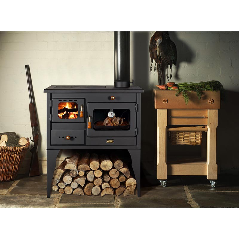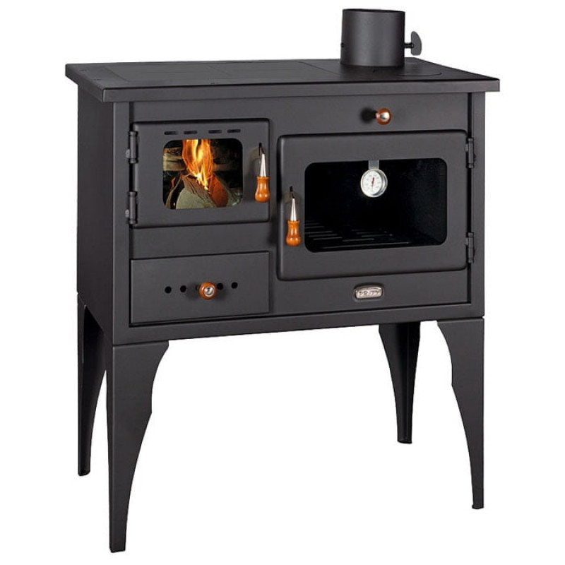 Masina de gatit are 2 plite, din care o plita mare pe care se poate gati si cealalta este doar pentru incalzire. In interiorul camerei de ardere intra un lemn de 34cm.