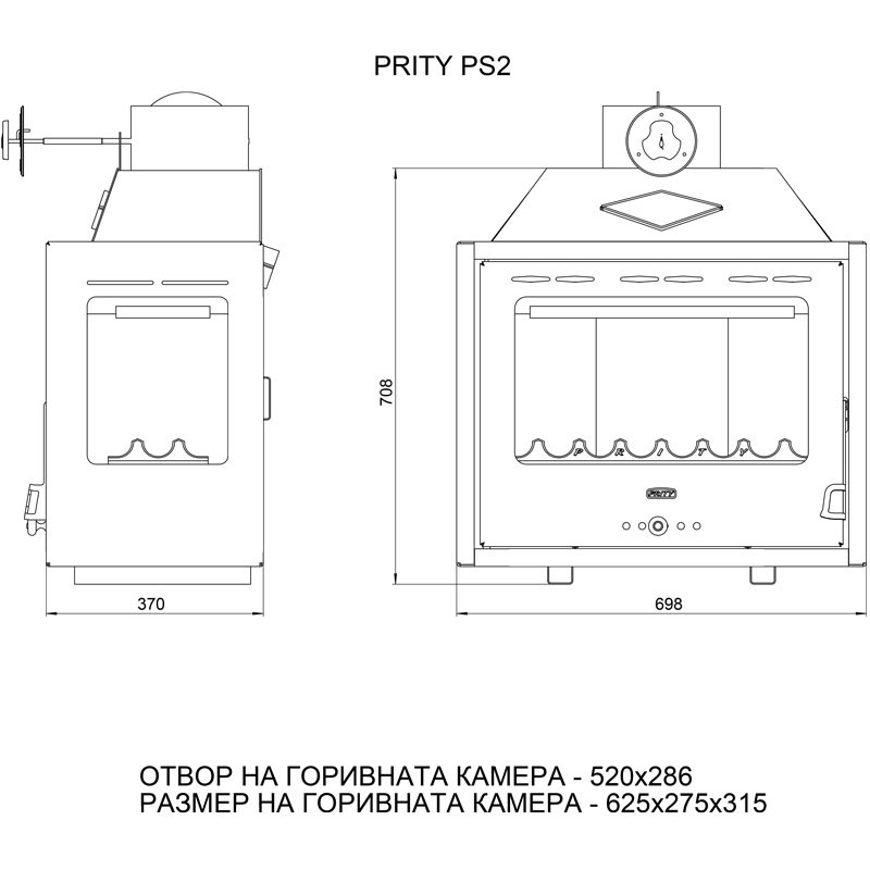 Dimensiunea camerei de ardere este de 625x275x315 mm.