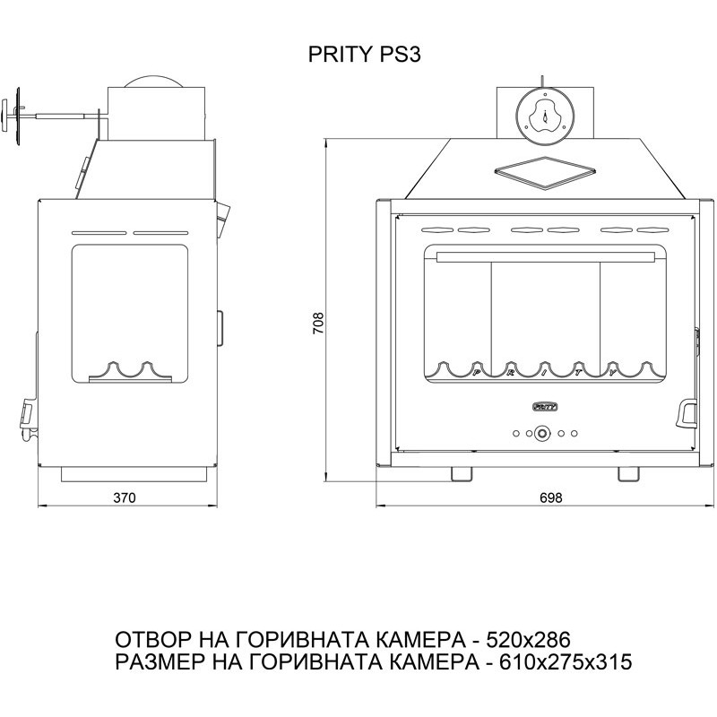 Dimensiunea camerei de ardere este de 610x275x315 mm.