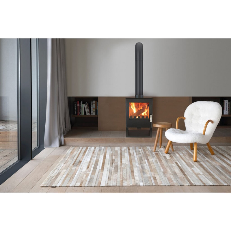 sticlei facilitează alimentarea cu lemn și dezvăluie confortul flăcării.