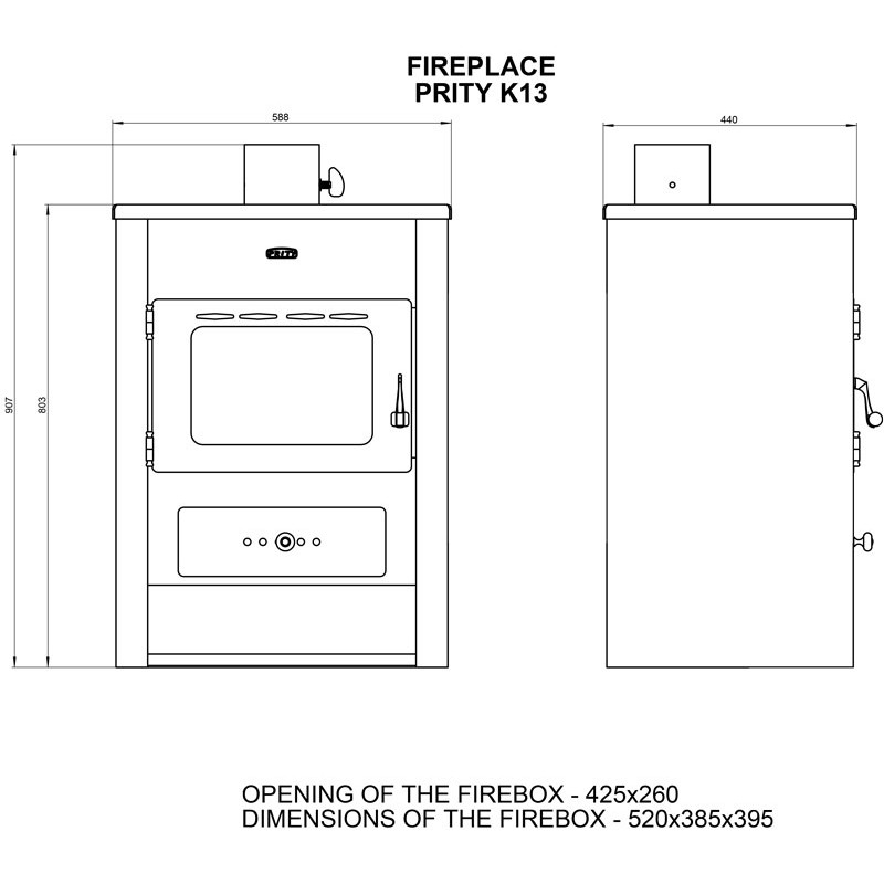 Soba simpla Prity K13 poate incalzi 184m³ de aer la o casa izolata sau 133m³ de aer la o casa neizolata.