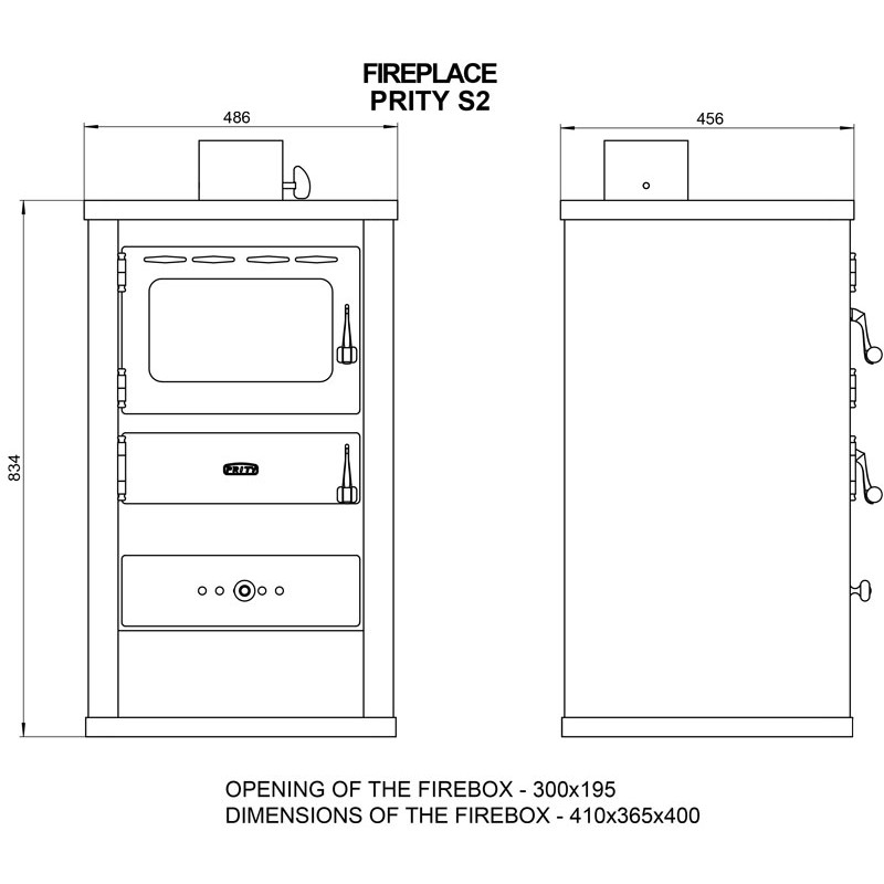 Dimensiunea camerei de ardere este de 410x365x400 mm.
