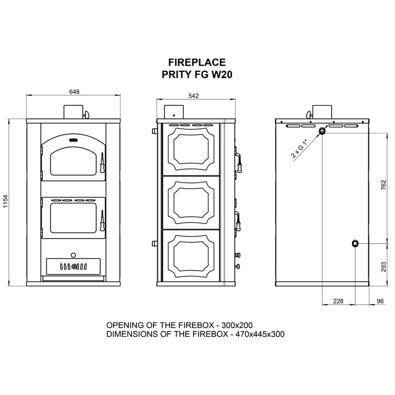 Dimensiunea camerei de ardere este de 470x445x300 mm.