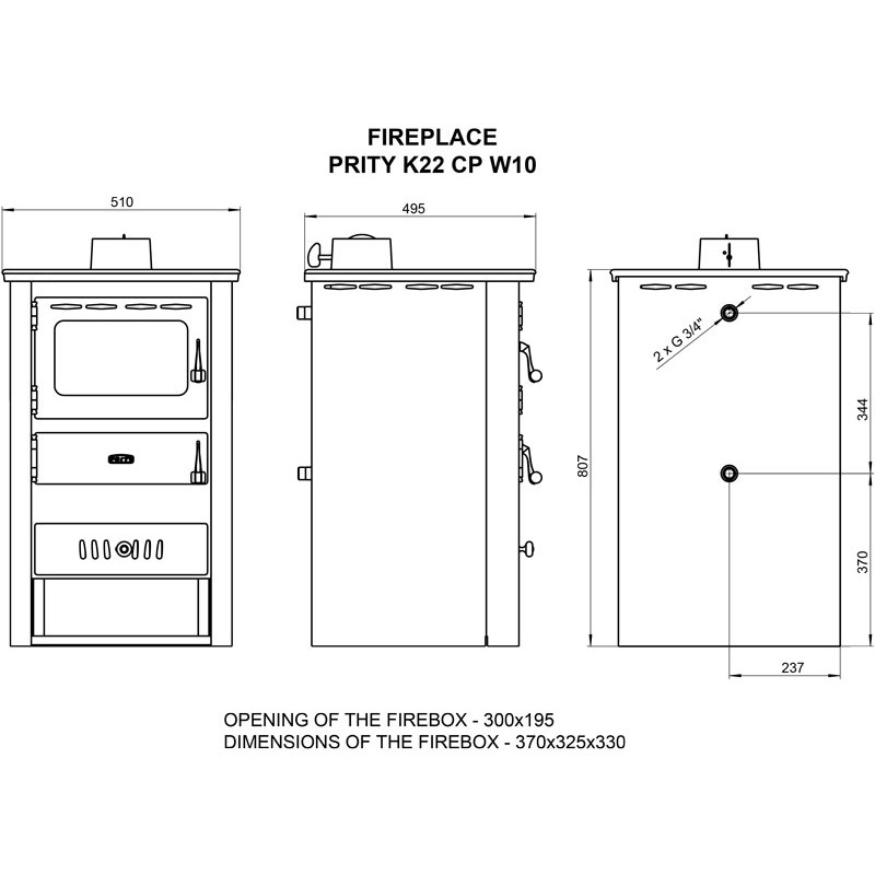 Dimensiunea camerei de ardere este de 370x325x330 mm.