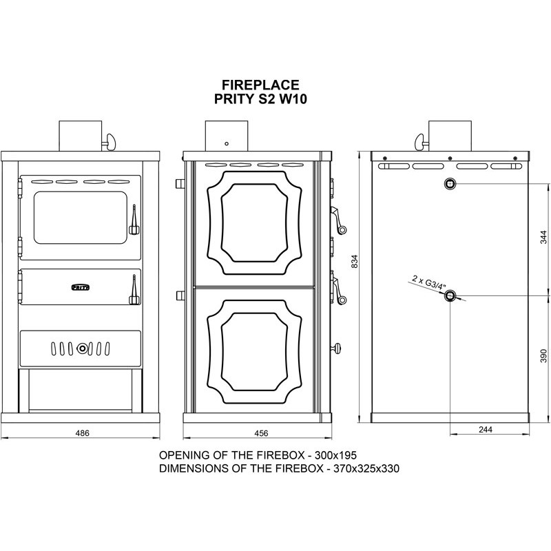Volumul bazinului de apa este de 14 litri. Soba tip centrala Prity S2W10 poate incalzi 246m³ de aer la o casa izolata sau 177m³ de aer la o casa neizolata.