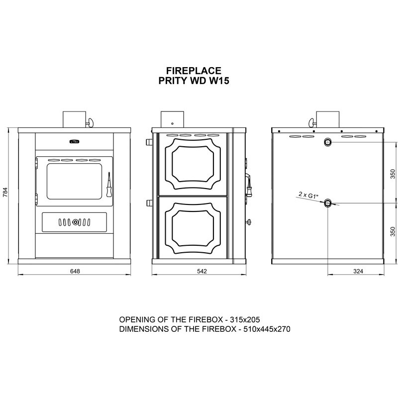 Volumul bazinului de apa este de 18 litri. Soba tip centrala Prity WDW15 poate incalzi 307m³ de aer la o casa izolata sau 222m³ de aer la o casa neizolata.