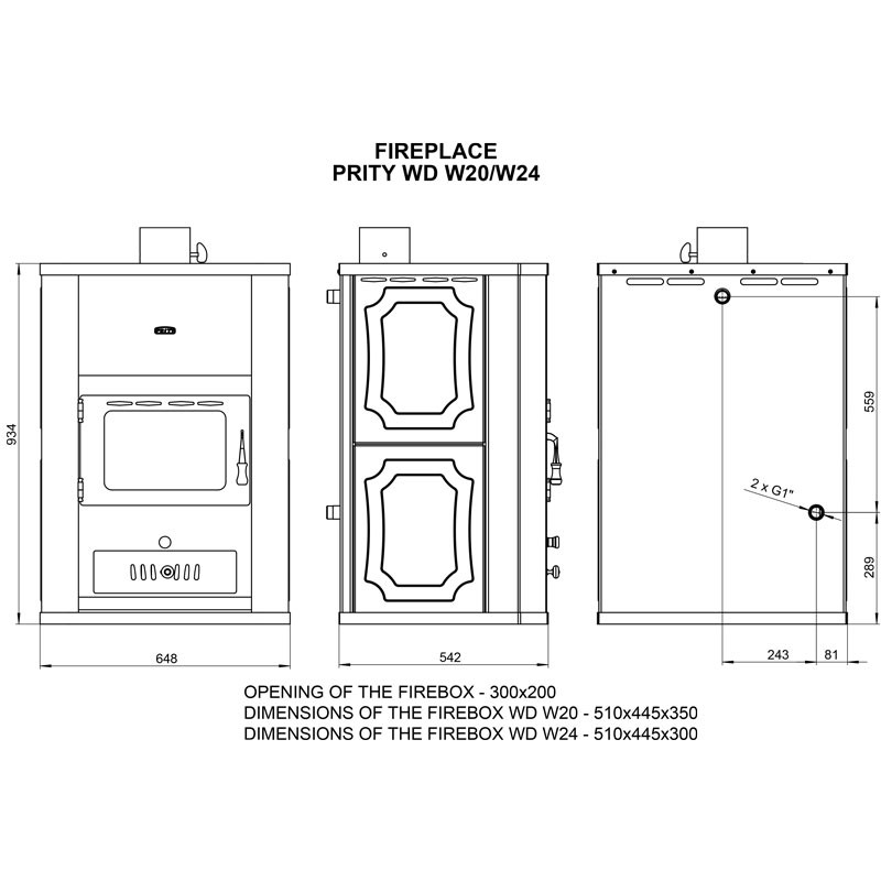 Volumul bazinului de apa este de 31 litri. Soba tip centrala Prity WDW24 poate incalzi 446m³ de aer la o casa izolata sau 322m³ de aer la o casa neizolata.
