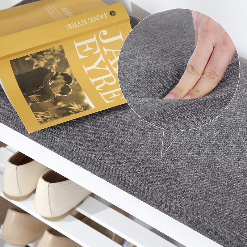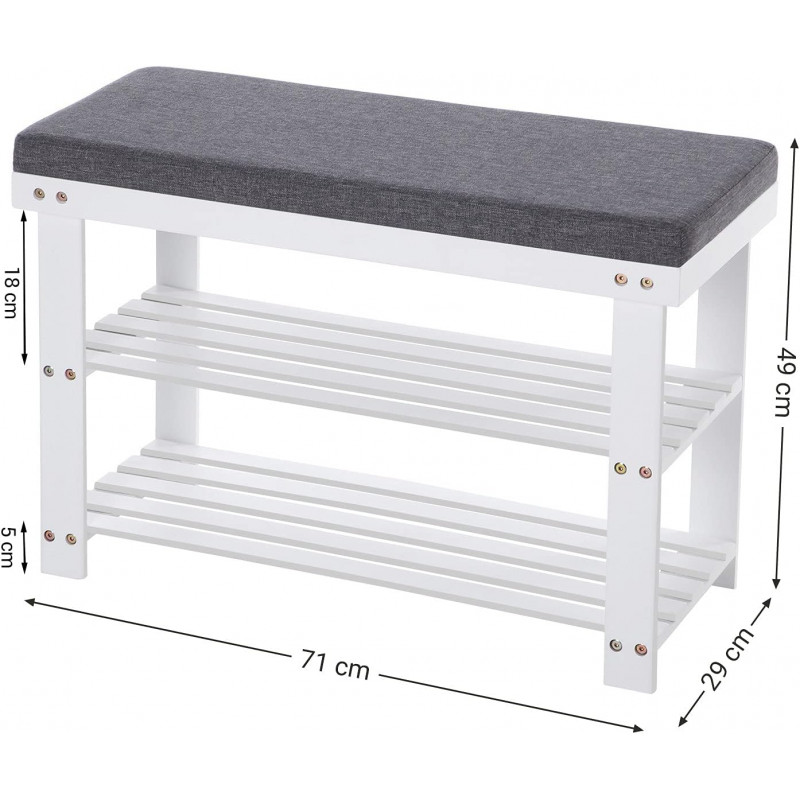 Pastrati produsul departe de obiecte ascutite si substante chimice agresive. Despre acest articol Rasfatati-va cu putina pace si liniste: Stati departe de vechile dvs. scaune dure ca piatra. Incercati aceasta banca confortabila pentru pantofi, captuseala din spuma groasa de 2,5 cm asigura un nivel ridicat de confort atunci cand va incaltati. Un ajutor puternic de zi cu zi: Ranforsata cu mai multe suruburi 2 in 1, aceasta banca pentru pantofi este foarte stabila si are o capacitate de incarcare buna (scaun: pana la 150 kg, rafturi: pana la 20 kg fiecare). Organizeaza-ti pantofii: Sunteti deranjat de mormanele de pantofi de pe podea? Acest suport pentru pantofi va va veni in ajutor. Depozitati pantofii folositi frecvent pe cele 2 rafturi ale sale, astfel incat sa ii puteti accesa cu usurinta dimineata.