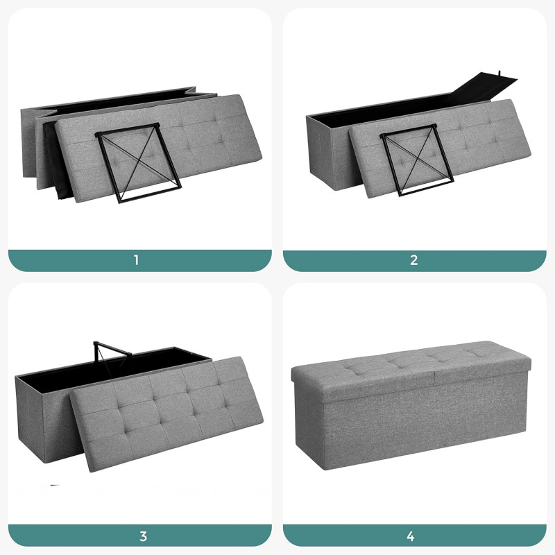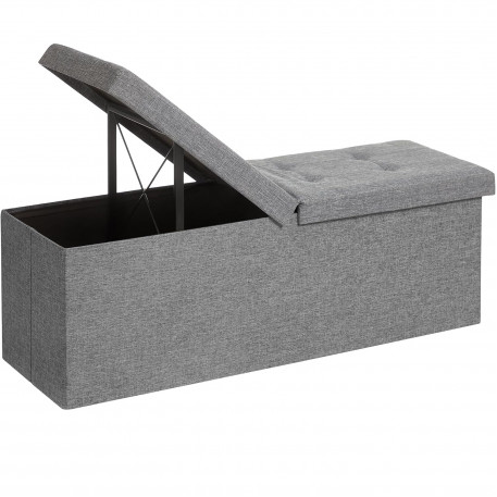 Scurta descriere: Aceasta bancuta pliabila de la SONGMICS ofera un echilibru perfect intre design modern si functionalitate. Cu un capac dublu rabatabil si spatiu interior de 120 L, este ideala pentru depozitarea lenjeriei, hainelor sau cartilor, oferind totodata un loc confortabil de stat.