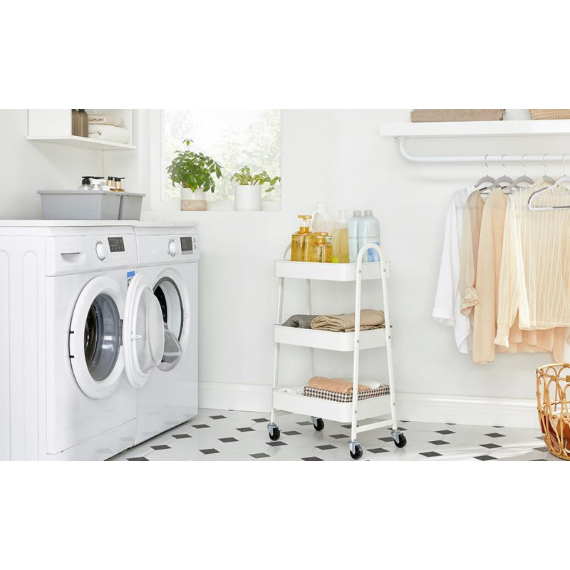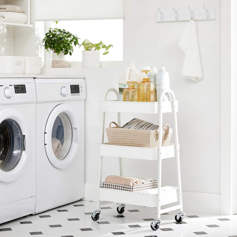 Scurta descriere Caruciorul de depozitare SONGMICS cu 3 niveluri este solutia ideala pentru organizarea spatiilor inguste din bucatarie, baie, dormitor sau camera hobby. Cu roti robuste si manere laterale, acesta se deplaseaza usor chiar si incarcat. Structura metalica rezistenta si designul compact il fac un ajutor de incredere in orice incapere.