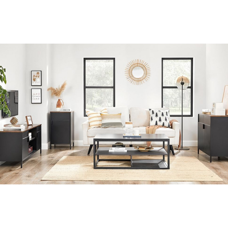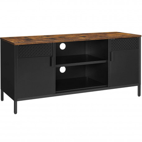 Scurta descriere: Comoda TV SONGMICS imbina designul vintage cu functionalitatea moderna. Cu 6 compartimente si 3 rafturi reglabile, ofera spatiu optim pentru organizarea echipamentelor media, decoratiunilor sau albumelor de familie. Constructia robusta din PAL si otel permite sustinerea televizoarelor de pana la 55 inch.
