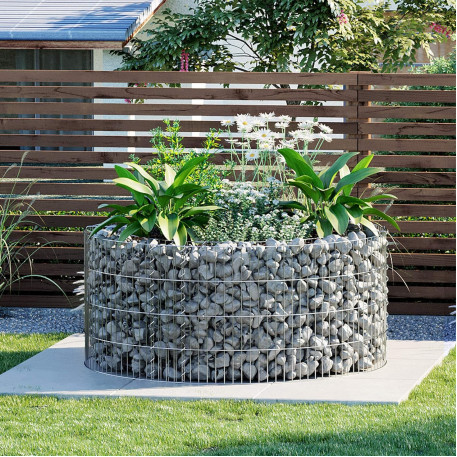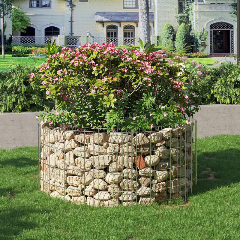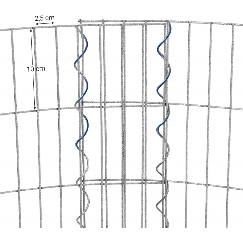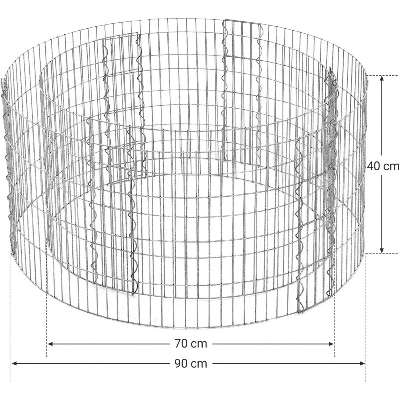 Diametrul spiralei: 1,5 cm Despre acest articol Nu aveti nevoie de un gradinar profesionist pentru a asambla acest gabion metalic! Fara niciun instrument, doar asamblati gratarele cu spiralele, usor si distractiv!Sarma din otel galvanizat cu diametrul de 2,5 mm este rezistenta la coroziune si rugina. Carligele de armare rezistente nu se imprastie. Acest gabion de piatra este puternic si stabil.Gradina este, fara ezitare, cel mai bun loc de relaxare si meditatie. Cu o forma rotunda si elemente naturale, cum ar fi pietre, pietricele, plante si o fantana, acest gabion de piatra va aduce seninatate si armonie in gradina dvs.Dimensiunea ochiurilor de plasa a acestui gabion este de 2,5 x 10 cm, iar distanta de umplere este de 10 cm. Va recomandam sa adaugati pietre cu un diametru de 3 pana la 10 cm care sa nu depaseasca o greutate totala de 180 kg.