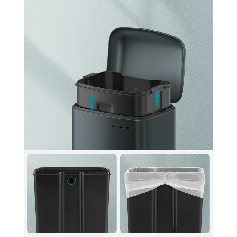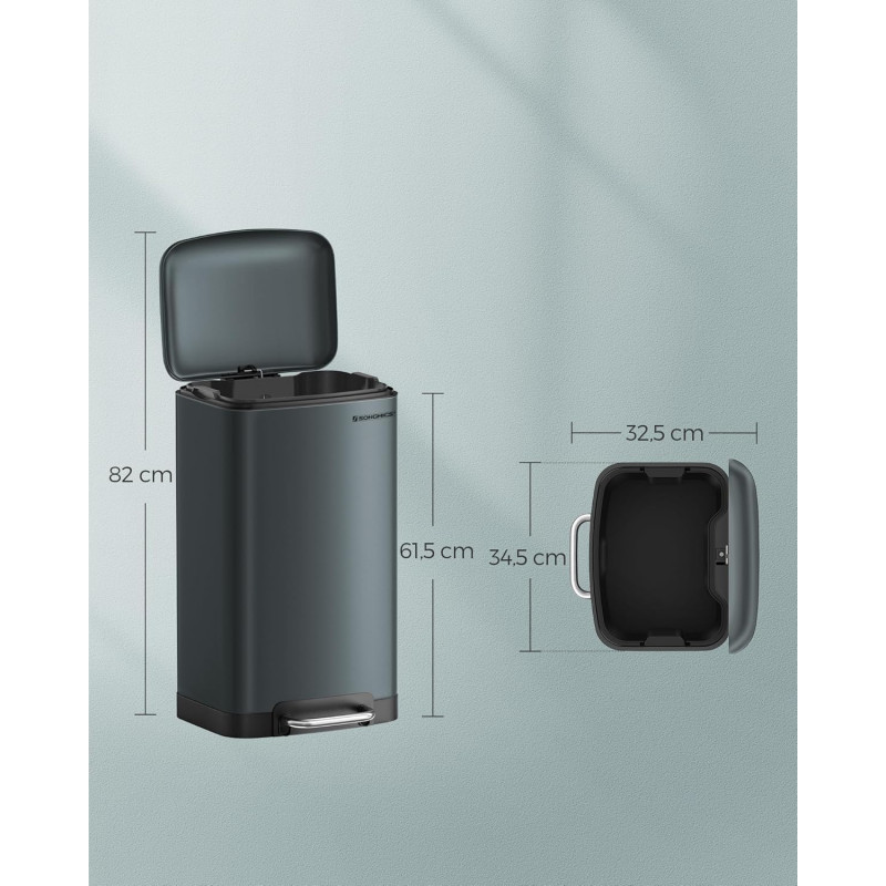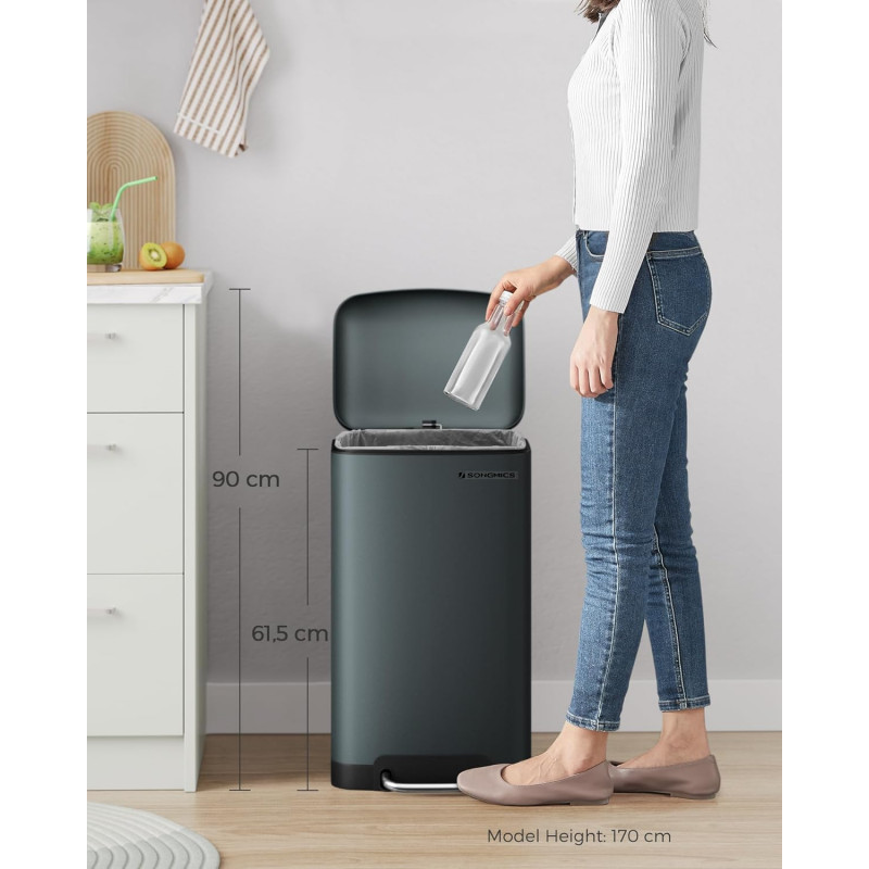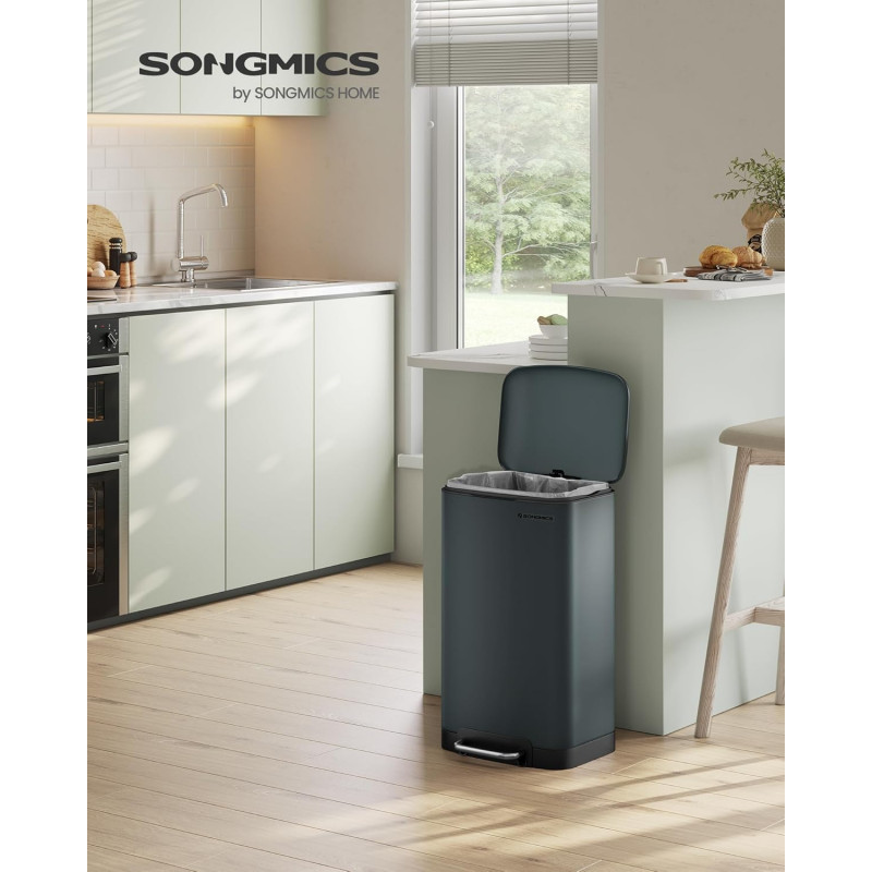 Scurta descriere Cosul de gunoi SONGMICS de 30 L imbina designul modern cu functionalitatea inteligenta. Prevazut cu pedala si capac cu inchidere silentioasa, permite o utilizare comoda si igienica. Galeata interioara este detasabila pentru curatare usoara, iar sistemul de prindere a sacului pastreaza totul ordonat. Ideal pentru bucatarii compacte sau spatii de locuit.