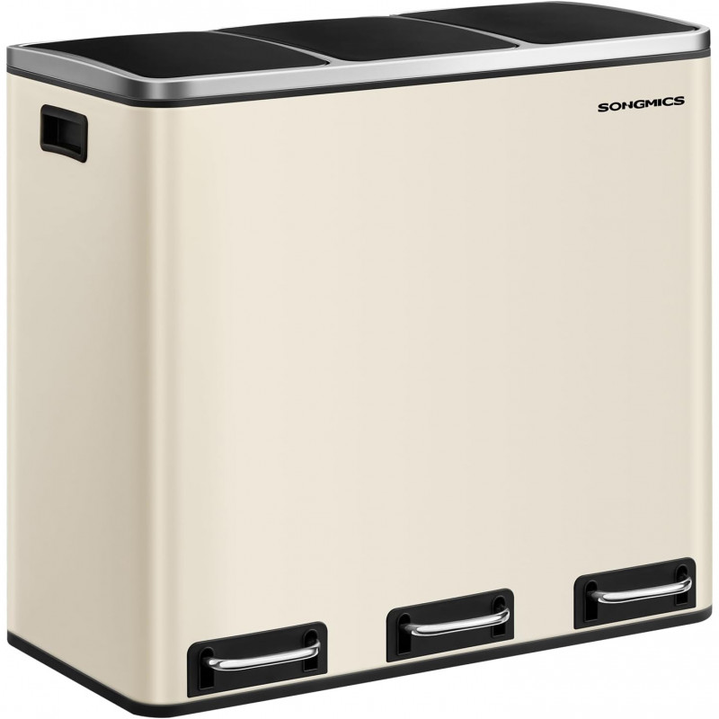Scurta descriere Cosul de gunoi SONGMICS cu 3 compartimente este solutia ideala pentru sortarea eficienta a deseurilor in bucatarie. Designul modern si capacitatea generoasa permit separarea usoara a resturilor menajere, ambalajelor si deseurilor organice. Sistemul cu pedala si capacele soft-close asigura confort si utilizare silentioasa.