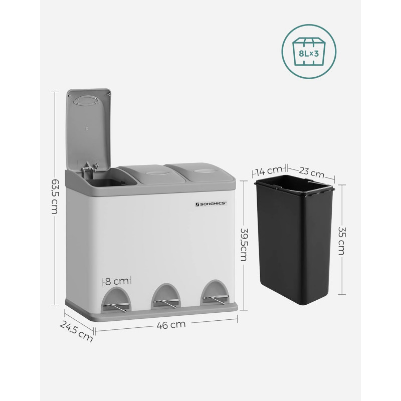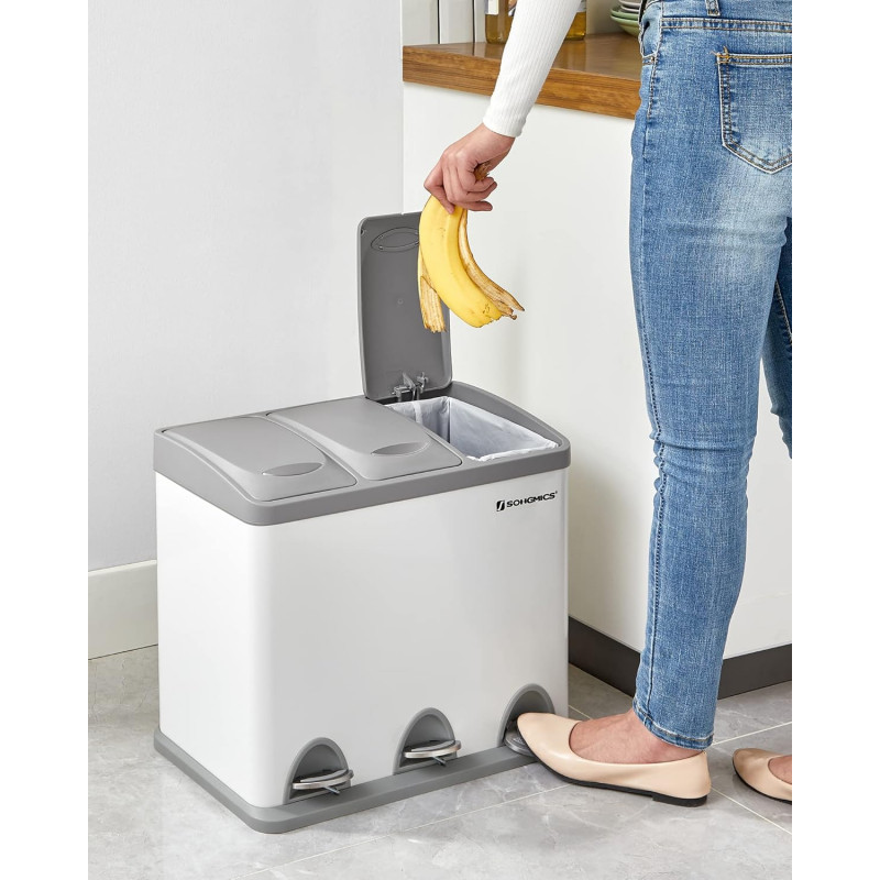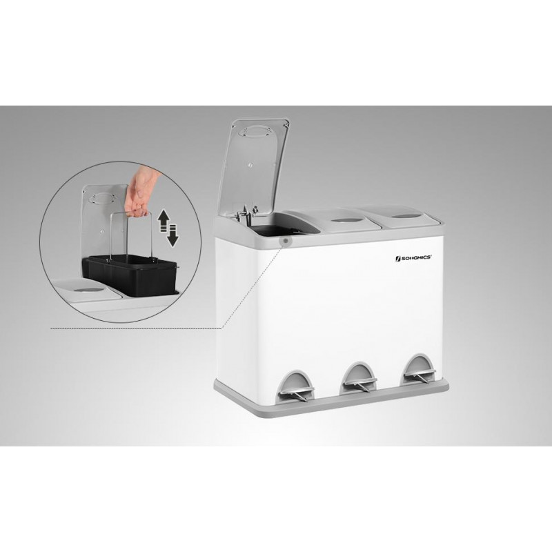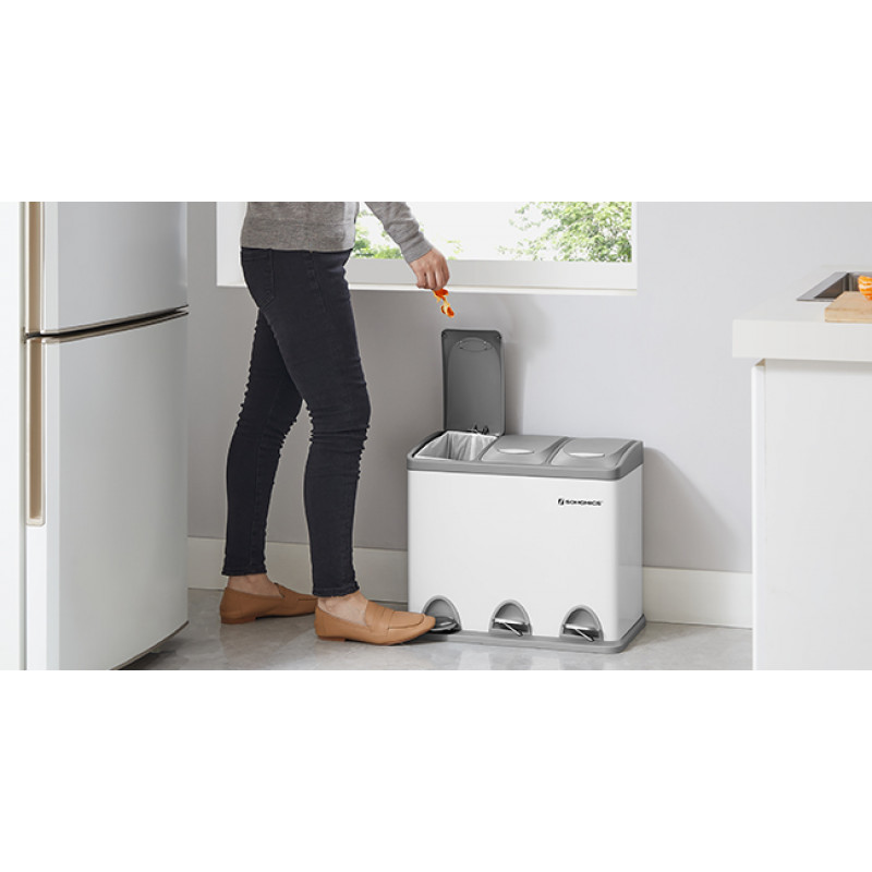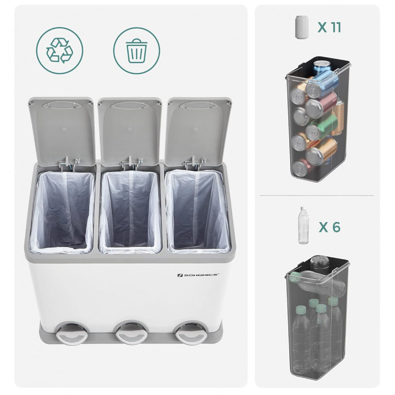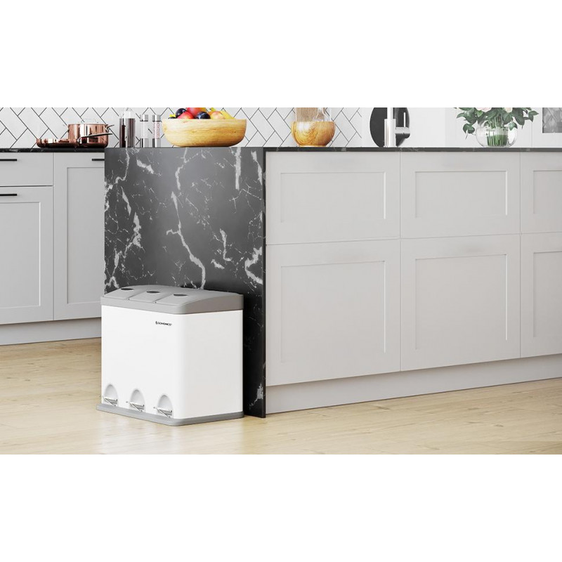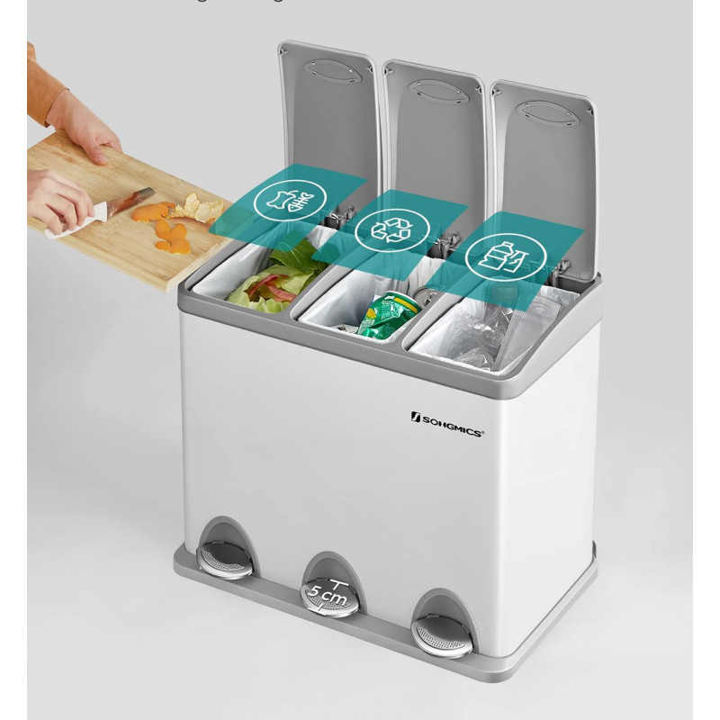 Ce primiti: Un cos de gunoi modern de 24 de litri, cu 3 compartimente, care va ajuta sa va sortati usor gunoiul. Asa ca rasfatati-va cu acest cos de gunoi si creati o casa curata.