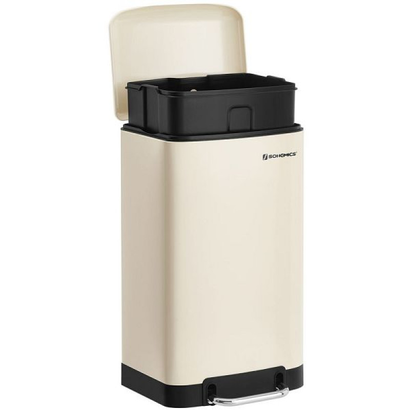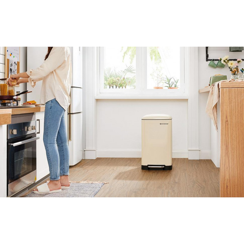 Utilizare optima a spatiului: Acest cos de gunoi de bucatarie de 30 L este foarte spatios si economiseste spatiu datorita dimensiunilor sale compacte de 34,5 x 32,5 x 61,5 cm. Designul modern si elegant se integreaza bine in orice camera.