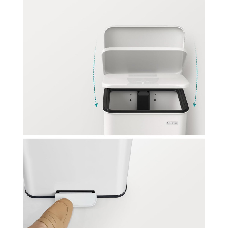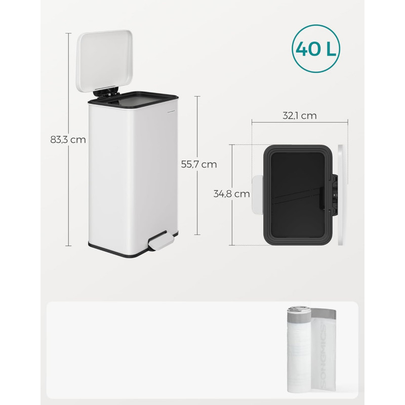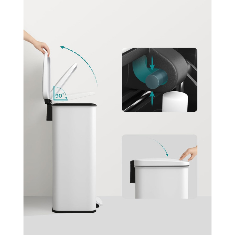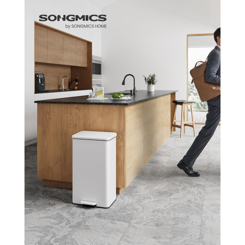 Scurta descriere: SONGMICS Cos de gunoi cu pedala, capacitate 40 litri, este potrivit pentru bucatarie datorita designului modern si mecanismului de inchidere lenta. Capacului i se poate mentine pozitia deschisa in timpul gatitului, iar sistemul de fixare a sacului pastreaza interiorul ordonat si discret.