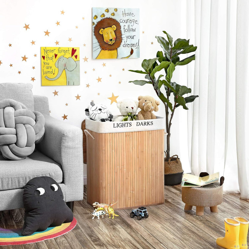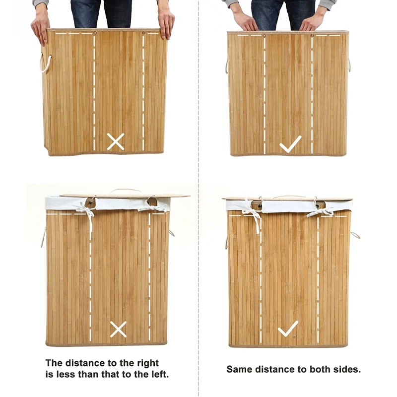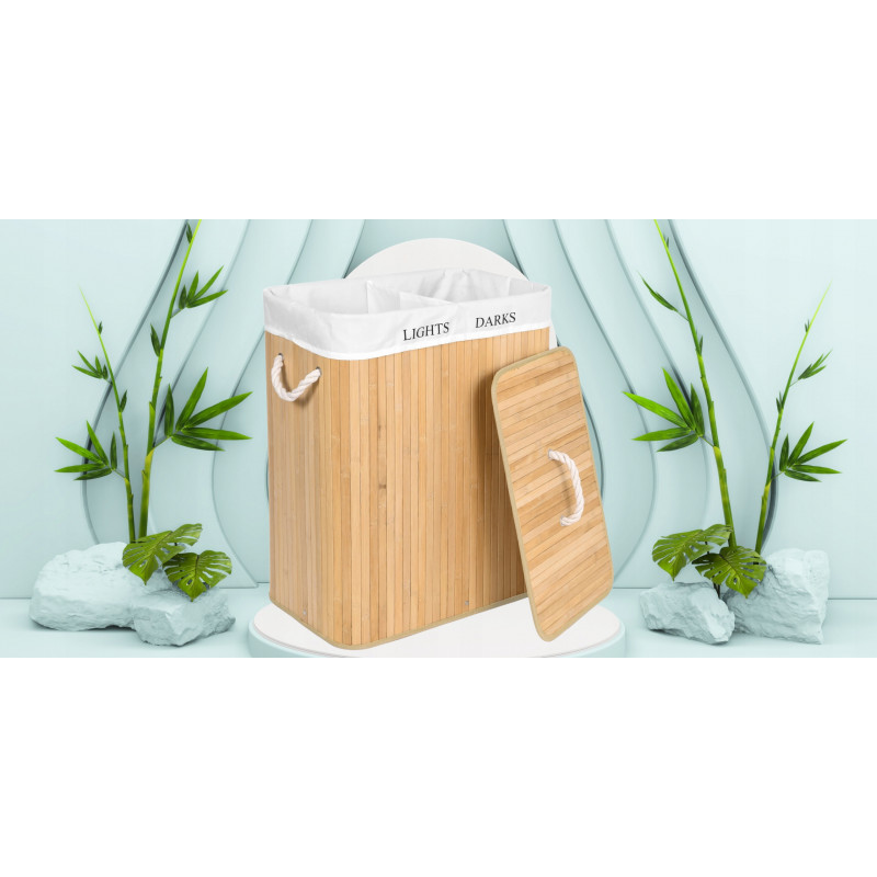 Greutate: 2,7 kg Despre acest articol Cosul de rufe este fabricat din bambus natural, ecologic si usor, poate suporta tensiuni mari fara sa se deformeze; panza interioara din bumbac este respirabila si previne mirosurile neplacute; corpul este tinut de un cadru cu inele de sarma dubla, baza este fixata cu sarma metalica si panou dur pentru o stabilitate si o performanta de sustinere sporita.Capacul este conectat la corp prin 2 inele circulare metalice pentru a preveni caderea, puteti plasa pe capacul largit unele articole de mai putin de 10 kg; toate marginile sunt taiate cu fibra PP, manere convenabile din franghie de bumbac pe ambele parti pentru a facilita portabilitatea, oferind un cos durabil cu un aspect elegant/Acest cos poate contine o multime de rufe; husa de captuseala lavabila are 2 compartimente, puteti sa va sortati hainele in functie de culori si sa transportati doar punga de rufe la masina de spalat, economisind timp.Tineti toate rufele murdare departe de ochii oamenilor, ofera, de asemenea, mai multe solutii de depozitare pentru patura, jucarii, prosoape, pantofi etc. Ideal pentru dormitor, spalatorie, camera de serviciu.Ambalaj rafinat pentru a proteja bambusul de deteriorare; instructiunile ilustrate faciliteaza asamblarea; depozitati-l plat atunci cand nu este utilizat.