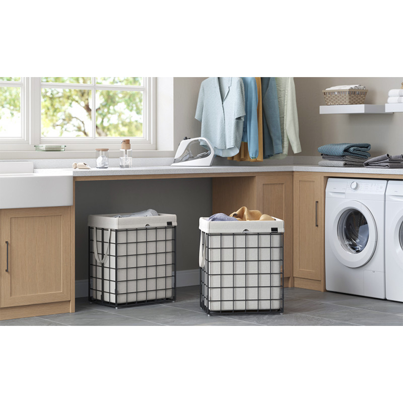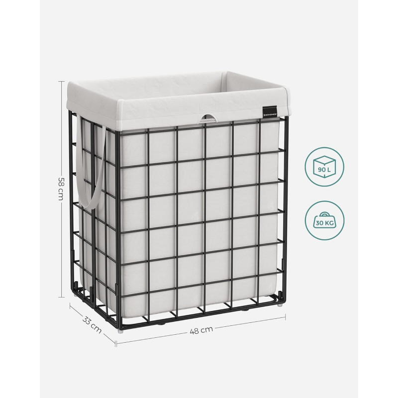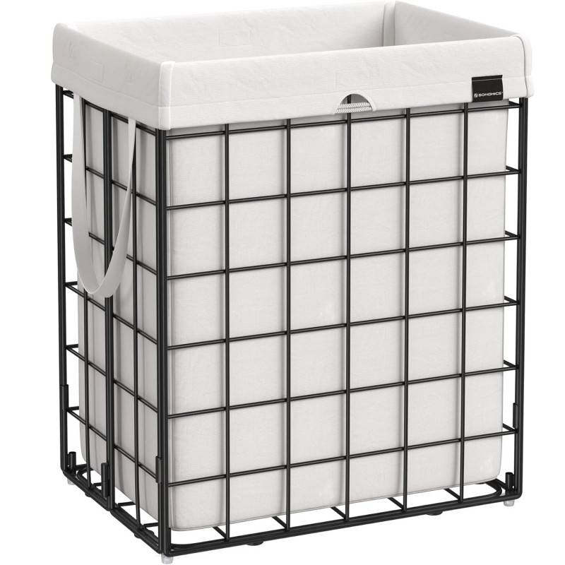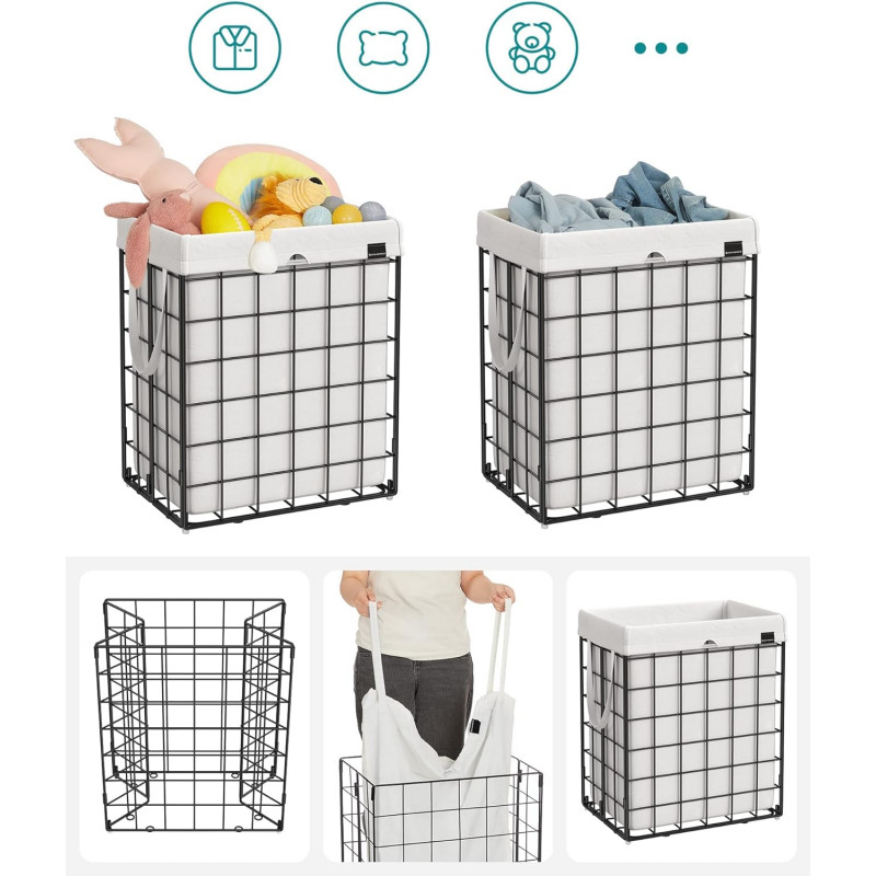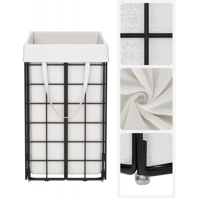 Capacitate de incarcare statica a cosului: 30 kg Despre acest articol Punga din tesatura de 200 g/m² este foarte solida si poate sustine pana la 20 kg, in timp ce cosul din sarma poate sustine pana la 30 kg. Nu ezitati sa umpleti cosul de rufe pana la refuz.Usor de indepartat si de mutat: Sacul este usor de indepartat. Manerele va permit sa transportati cu usurinta rufele din dormitor in spalatorie sau in baie, fara a fi nevoie sa carati intregul cos de rufe.Pliabil si usor de asamblat: Datorita designului pliabil, este suficient sa desfasurati cadrul, sa introduceti fundul si sa atasati sacul pentru a asambla acest cos de rufe in cel mai scurt timp.Lavabil si respirabil pentru o utilizare convenabila si igienica: Fabricat dintr-un amestec de policotona si bumbac, sacul este usor de spalat la masina si respirabil pentru o utilizare curata.Intimitatea dvs. este protejata: Pur si simplu strangeti cordonul pentru a inchide sacul de rufe si a pastra continutul ascuns.