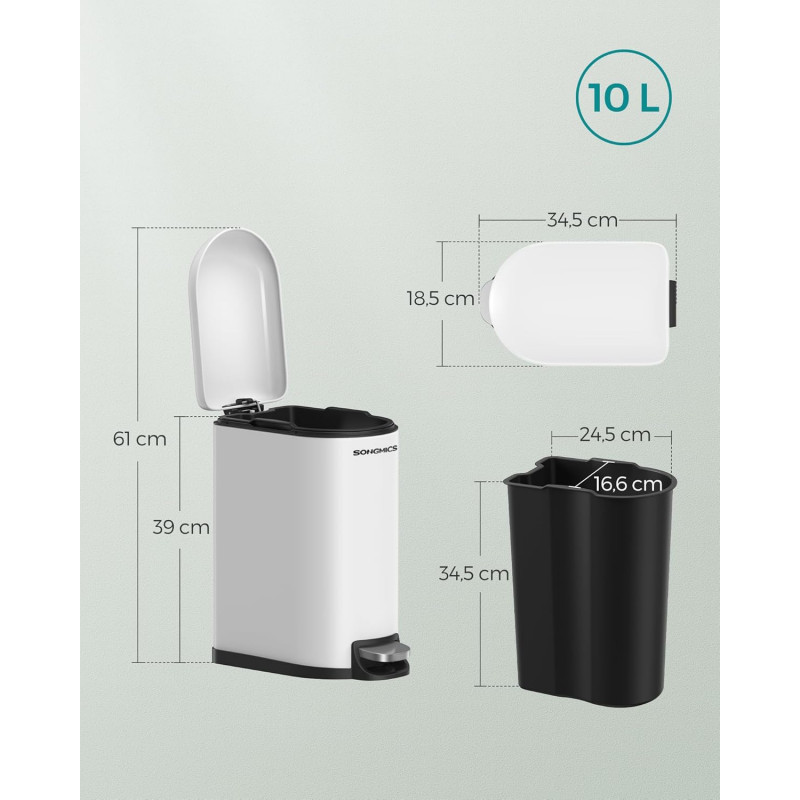 Scurta descriere Cosul de gunoi compact de 10 L este ideal pentru baie sau alte spatii mici. Designul ingust economiseste loc pe pardoseala, oferind in acelasi timp suficienta capacitate pentru utilizare zilnica. Fabricat din otel inoxidabil, este rezistent la umezeala, iar capacul cu inchidere lenta asigura utilizare silentioasa si confortabila. Galeata interioara detasabila permite golirea si curatarea rapida.
