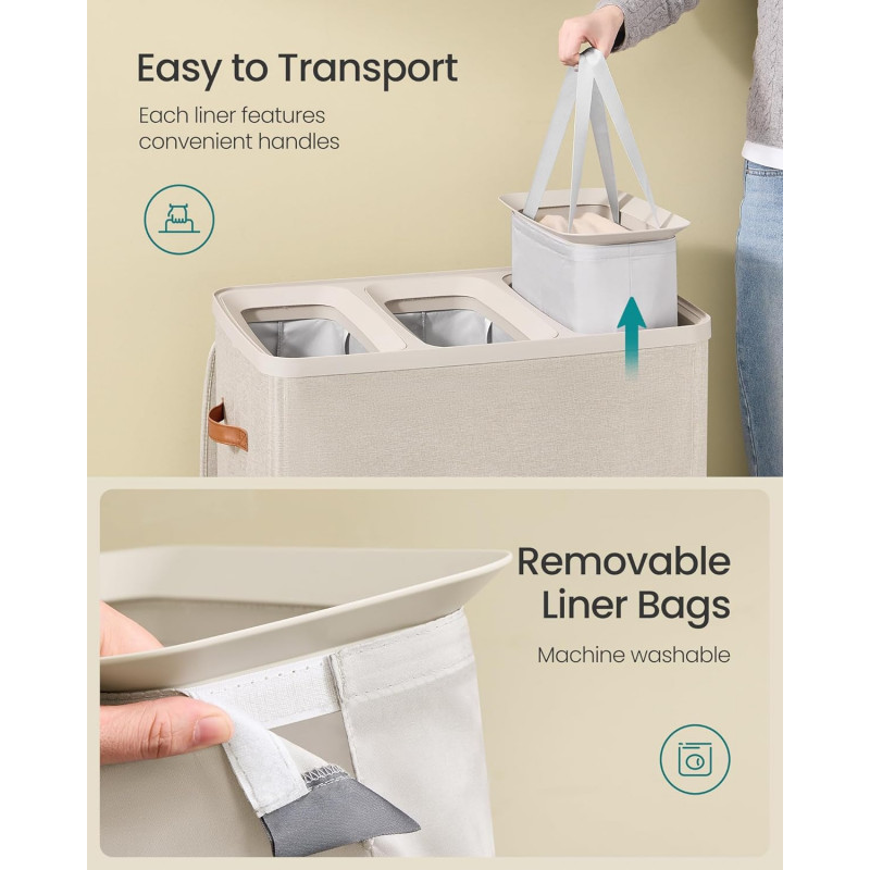 Trei compartimente pentru sortare eficienta a rufelor