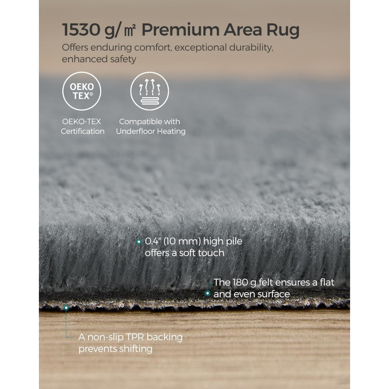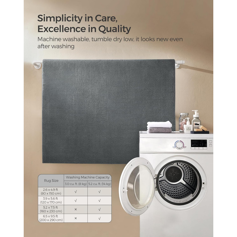 Acest covor SONGMICS combina confortul si stilul. Este mai mult decat o simpla decoratiune, va protejeaza si podeaua de zgarieturi. Podelele dvs. sunt protejate in special in zonele cu trafic intens. Pentru conceptele de locuinte deschise, un covor este ideal pentru delimitarea zonelor de locuit individuale unele de altele. Acest covor SONGMICS este usor de curatat si intretinut si astfel isi pastreaza frumusetea. Optati pentru SONGMICS acolo unde calitatea intalneste stilul si functionalitatea. Actualizati-va acum spatiul de locuit cu covorul nostru rafinat.