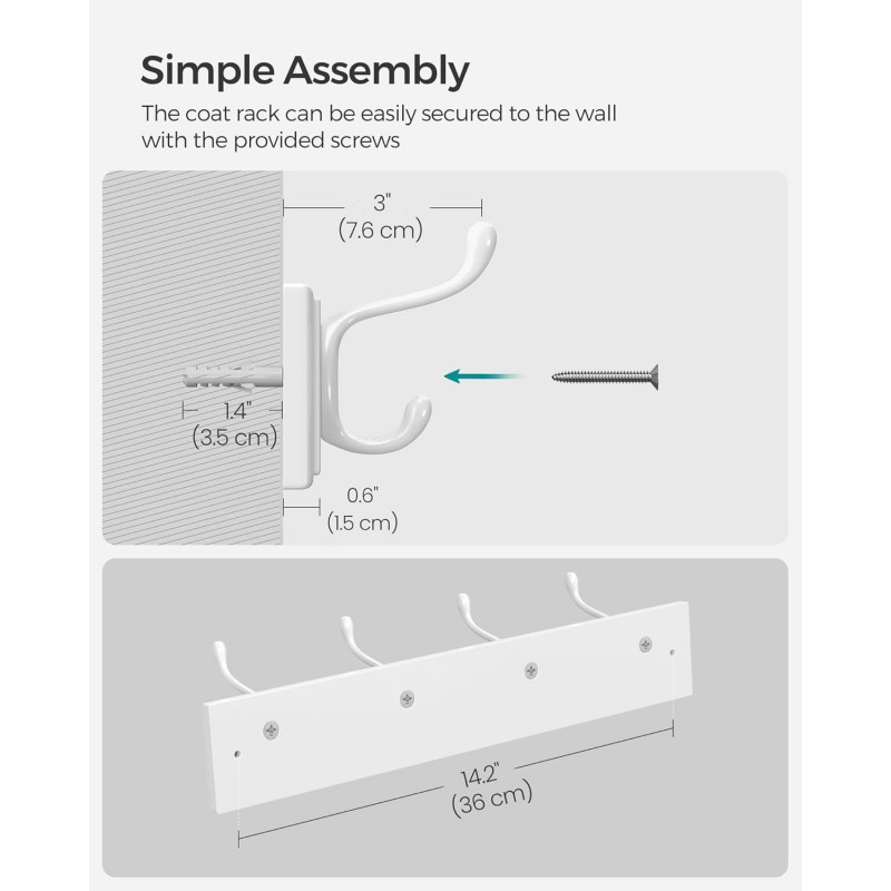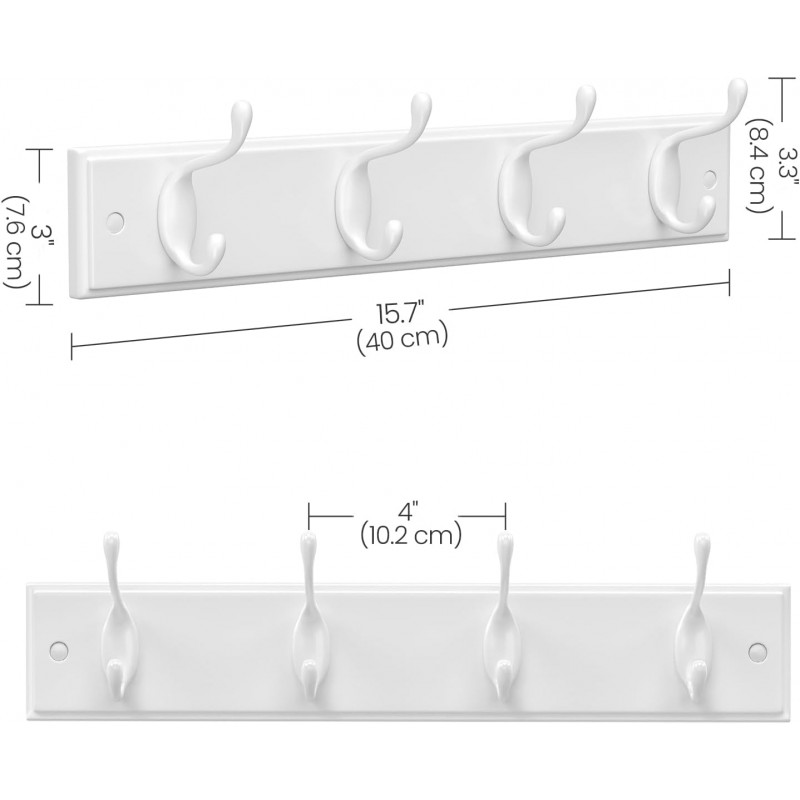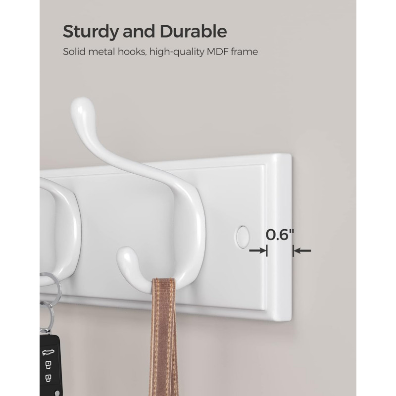 Scurta descriere Cuierul de perete SONGMICS aduce un plus de functionalitate si stil minimalist. Realizat din MDF vopsit alb si carlige metalice rezistente, suporta pana la 5 kg pe fiecare carlig dublu. Se monteaza usor pe perete si ofera spatiu suficient pentru jachete, genti, esarfe sau chei, fiind potrivit pentru diverse incaperi.