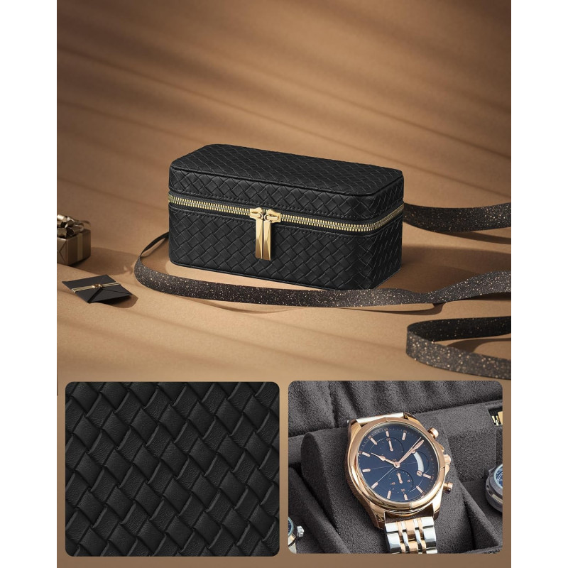 Scurta descriere Cutia pentru ceasuri SONGMICS Ronne Collection imbina eleganta clasica cu functionalitatea moderna. Confectionata din piele PU cu aspect impletit si interior moale din velur, ofera protectie si stil in acelasi timp. Cu 3 compartimente spatioase si buzunare suplimentare, este ideala pentru pastrarea ceasurilor si accesoriilor in siguranta, acasa sau in calatorii.