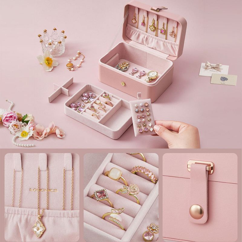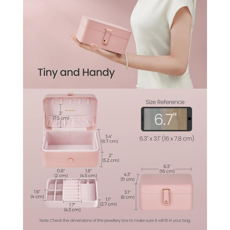 Scurta descriere Cutia de bijuterii SONGMICS GISELLA este alegerea perfecta pentru pastrarea accesoriilor tale in siguranta, oriunde te-ai afla. Designul compact si elegant permite transportul facil in bagaj, iar compartimentarea inteligenta iti ofera acces rapid la toate piesele preferate. Ideala pentru calatorii sau pentru organizarea zilnica.