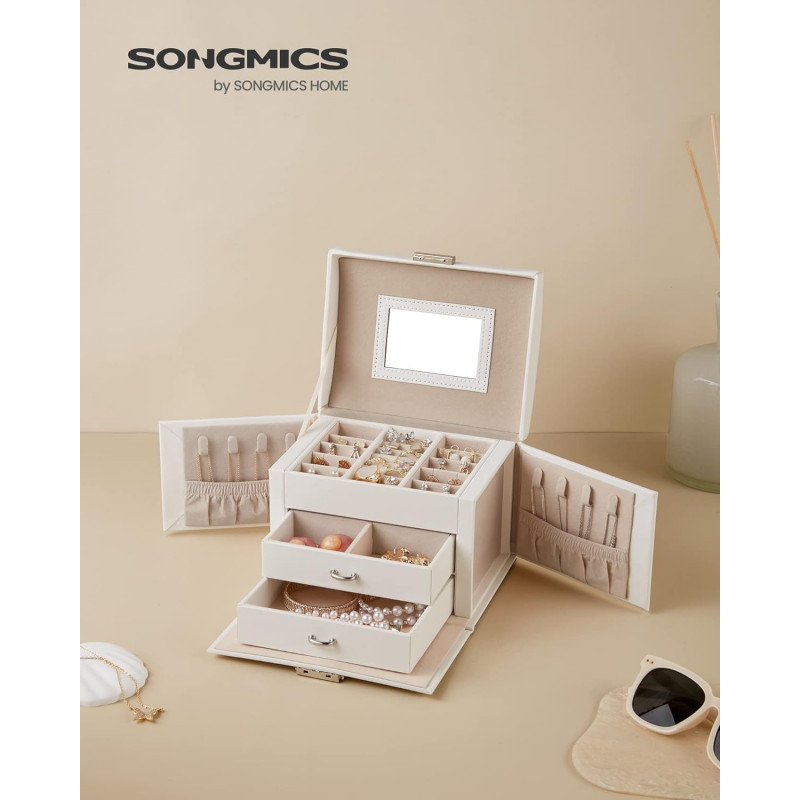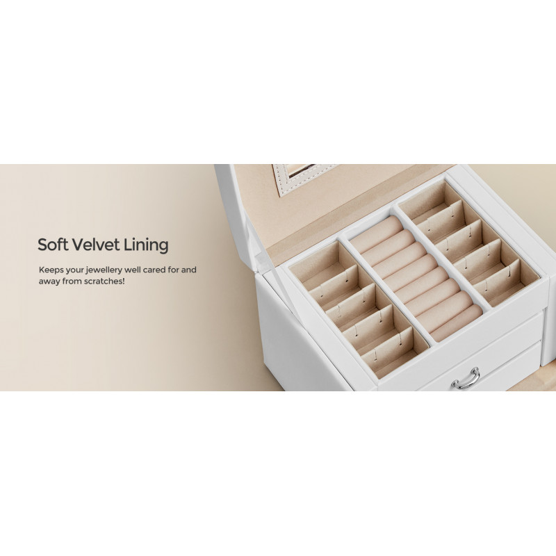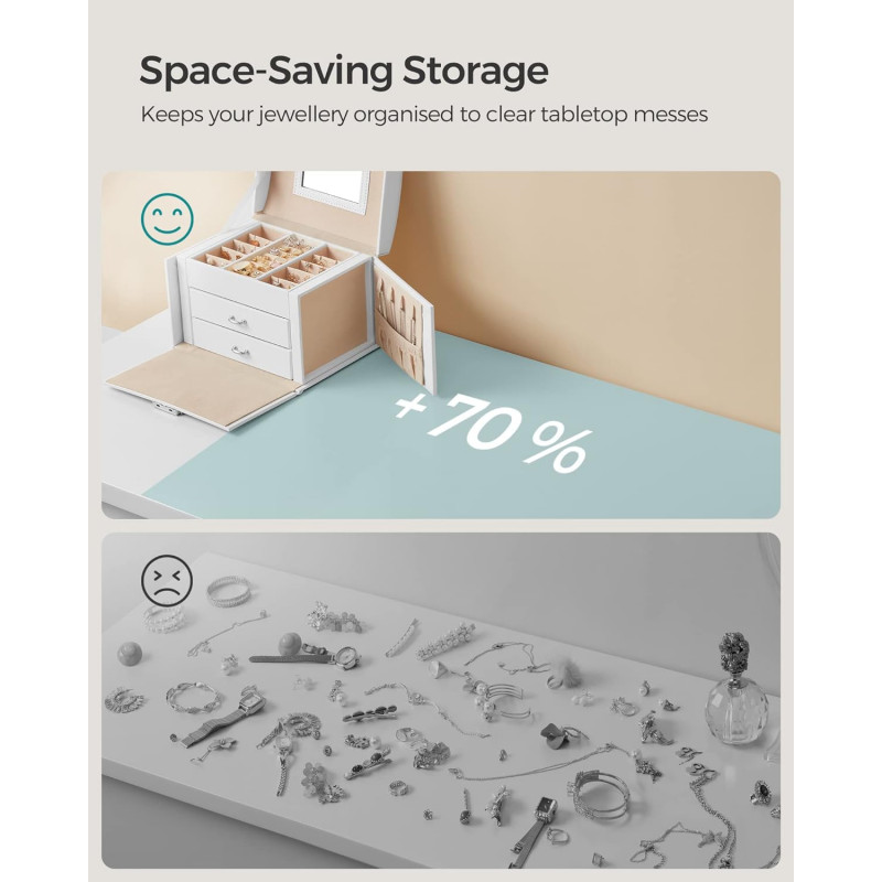 Cu oglinda interioara: Aceasta cutie de bijuterii are o oglinda transparenta pe capac pentru a va face mai convenabil sa va machiati, sa va puneti sau sa scoateti bijuterii si sa va verificati aspectul inainte de a iesi.