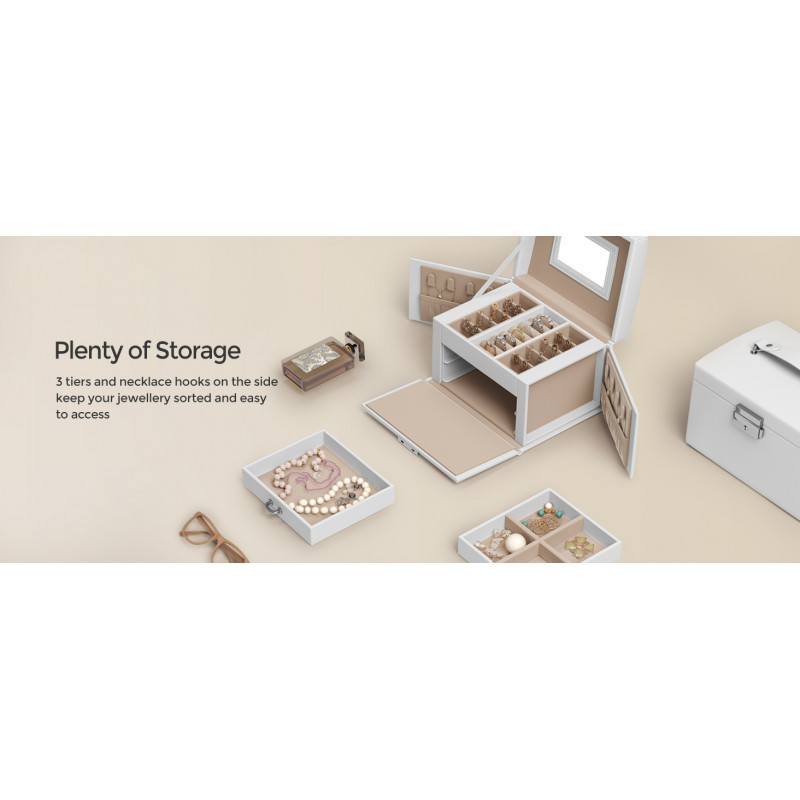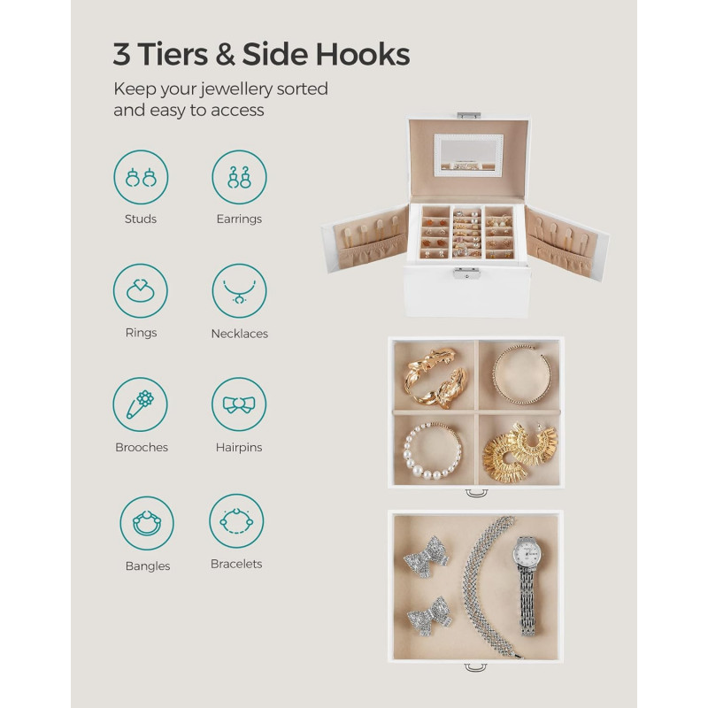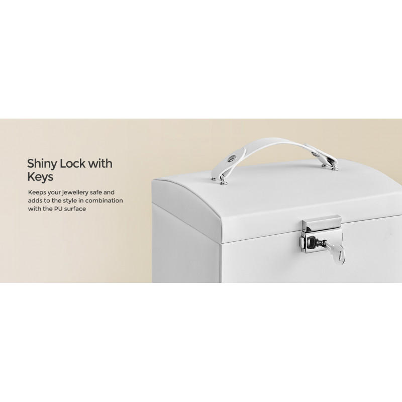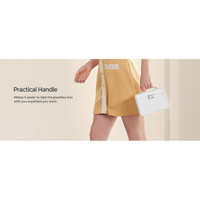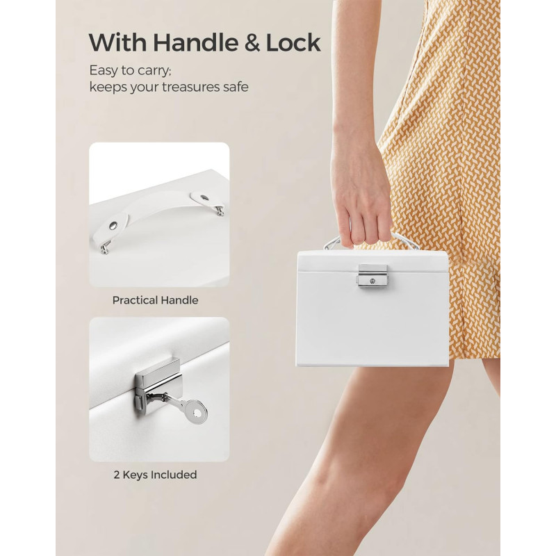 Incuiat si portabil: Organizatorul de bijuterii se incuie cu 2 chei pentru a va pastra piesele pretuite departe de copii; Datorita manerului din partea superioara, husa de bijuterii mica este portabila.