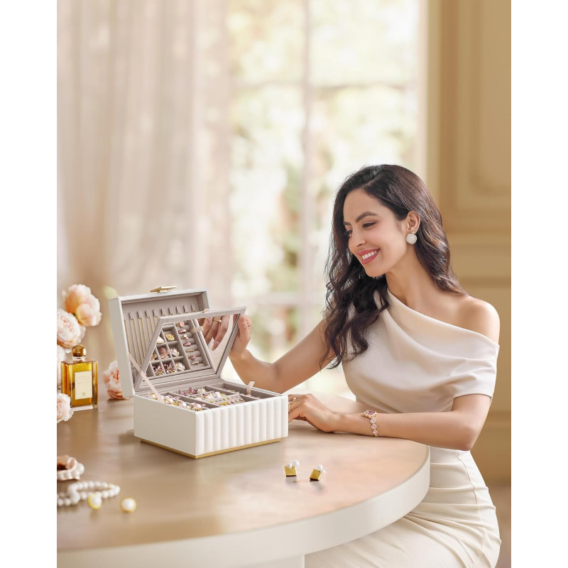 Cadou elegant: Aceasta cutie de bijuterii uimitoare imbunatateste decorul vanitatii, dormitorului, dressingului sau zonei de zi. Este un cadou memorabil pentru orice sarbatoare, potrivit pentru cei care apreciaza atat estetica rafinata, cat si designul practic.