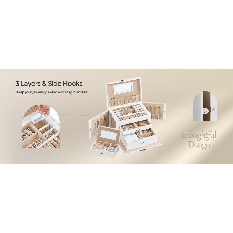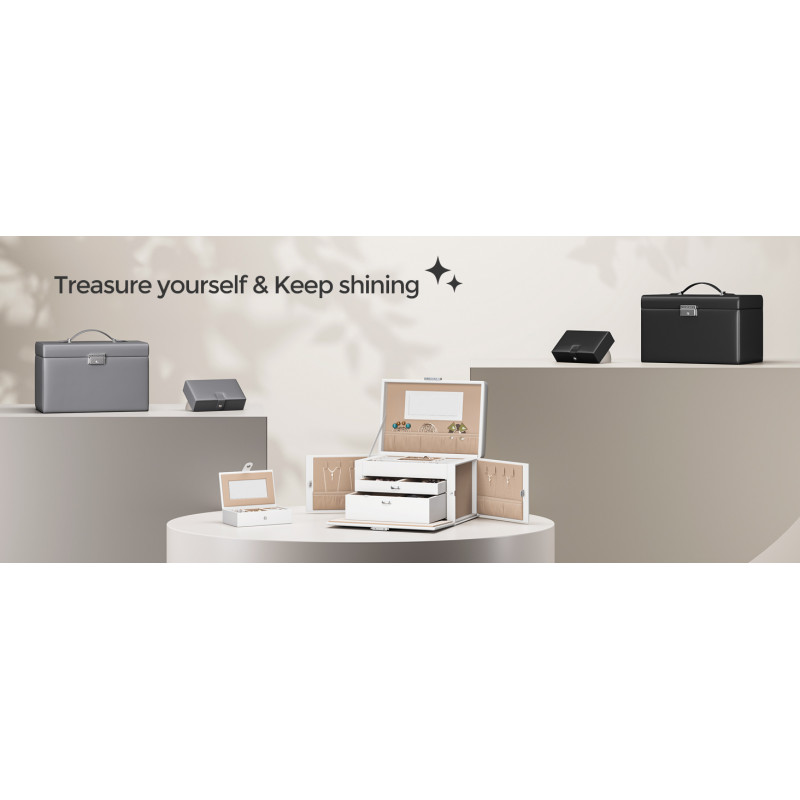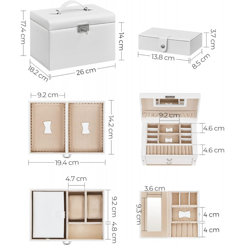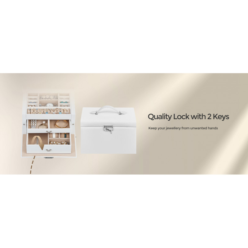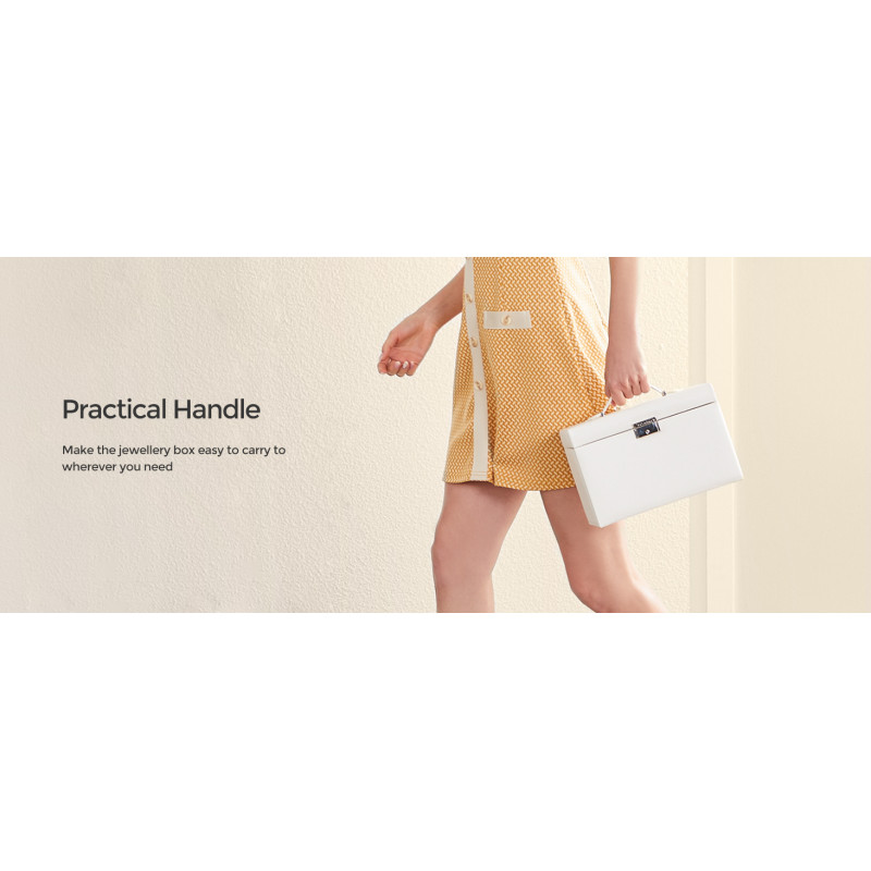 Lacat si maner practice: Aceasta cutie de bijuterii se incuie cu 2 chei pentru a va pastra obiectele de valoare in siguranta si la indemana; manerul de pe capac va permite sa transportati cu usurinta cutia de bijuterii oriunde doriti.