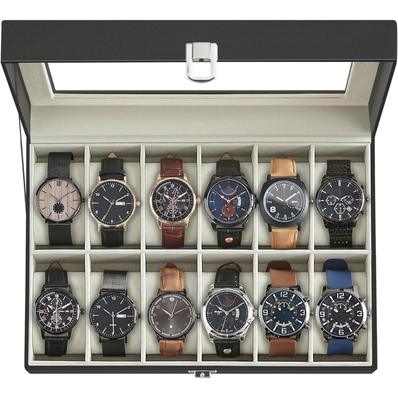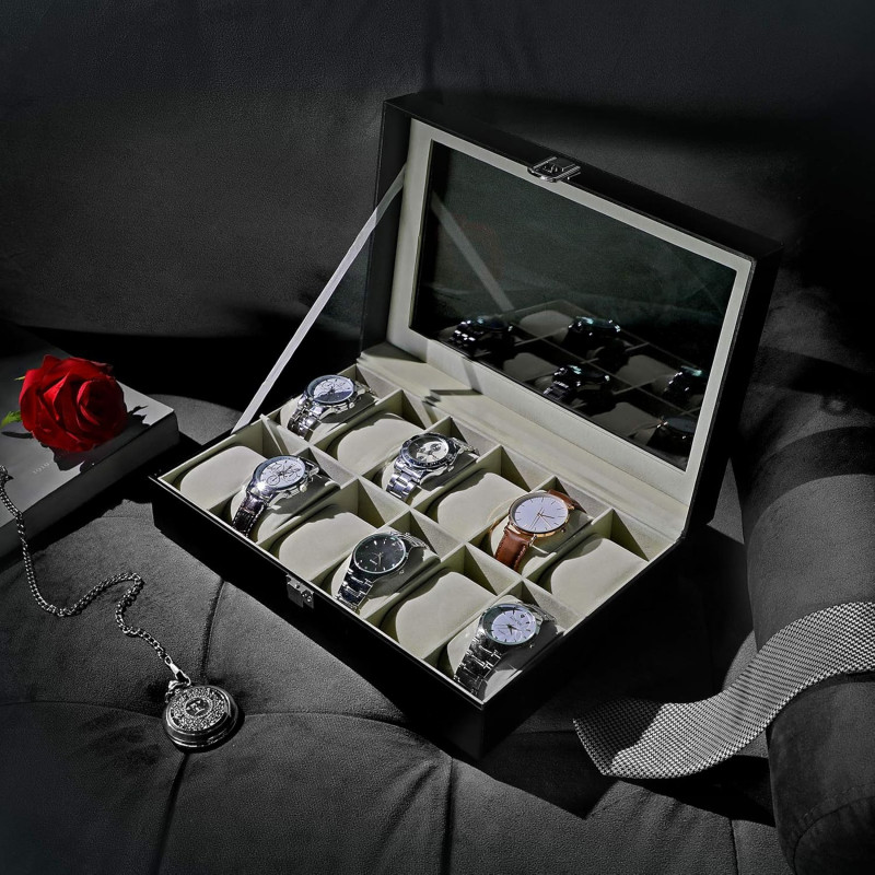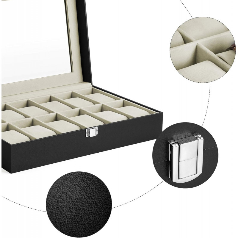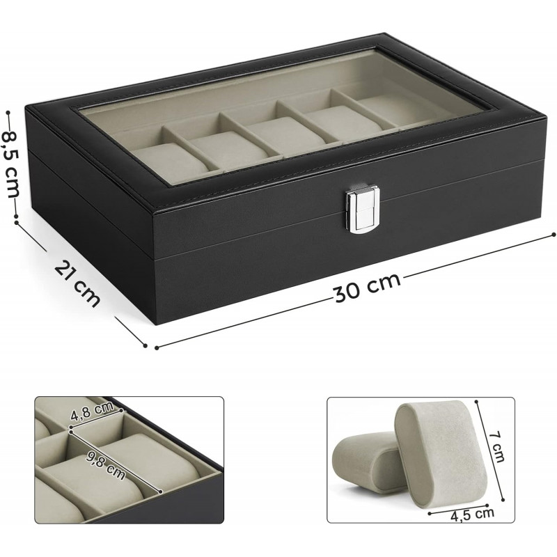 Scurta descriere Cutia pentru ceasuri SONGMICS este solutia eleganta pentru organizarea si protejarea colectiei tale. Designul modern, materialele de calitate si interiorul captusit cu catifea asigura depozitare sigura si un aspect premium. Capacul transparent permite vizualizarea rapida a ceasurilor, fiind ideala atat pentru uz personal, cat si pentru cadou.