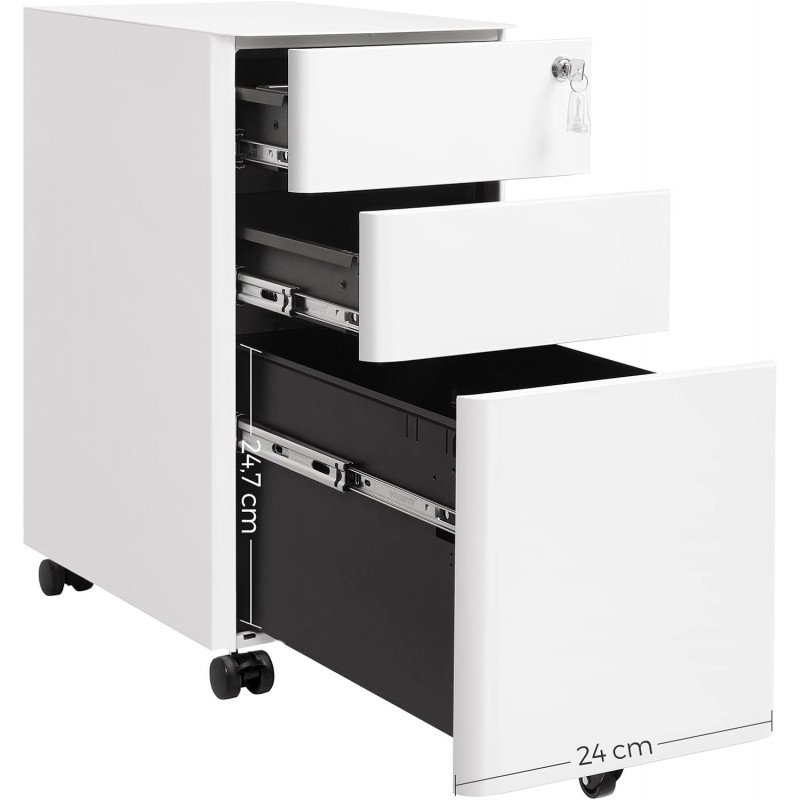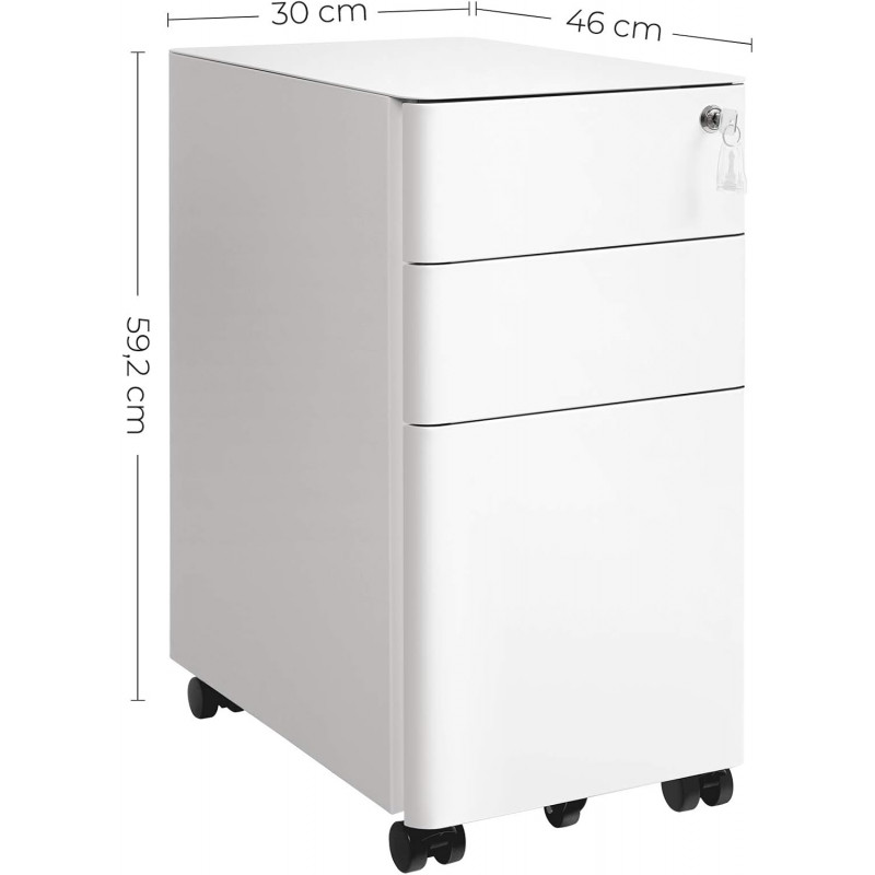 Scurta descriere Dulapul mobil SONGMICS cu 3 sertare este o solutie compacta si sigura pentru organizarea documentelor si a dosarelor in birou sau acasa. Construit din otel rezistent, ofera spatiu pentru hartii, dosare suspendate si obiecte de birou, totul protejat cu incuietoare. Designul modern si roțile practice il fac usor de mutat si adaptat oricarui spatiu.