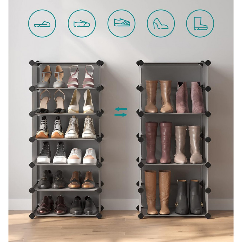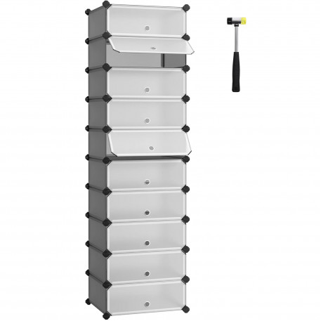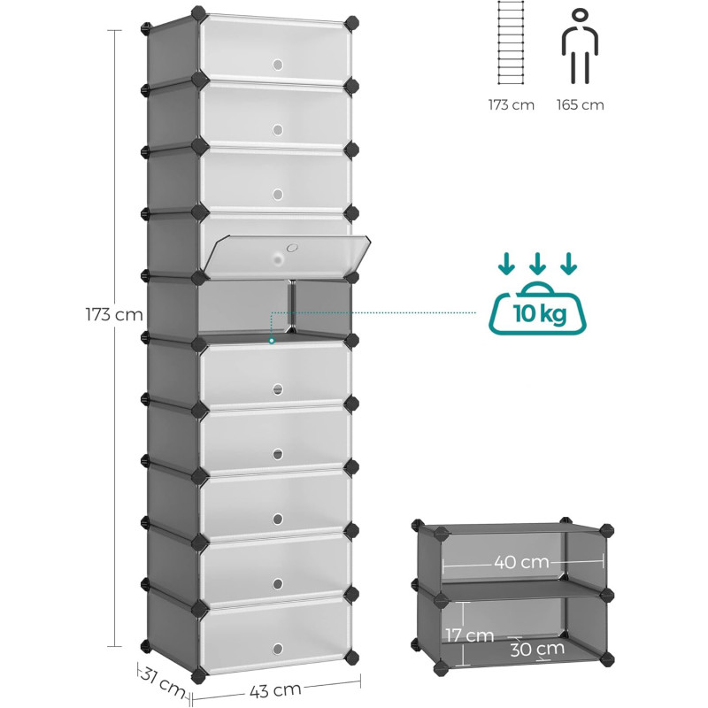 Max. Capacitatea de incarcare statica a fiecarui slot: 10 kg Despre acest articol Conceput pentru a utiliza spatiul de pe podea, acest suport pentru pantofi poate fi stivuit si personalizat in functie de spatiul si preferintele dumneavoastra, maximizand fiecare centimetru din coridor, camera de zi, sub scari, dulap, in spatele usii, pod si birou.Cu un ciocan si