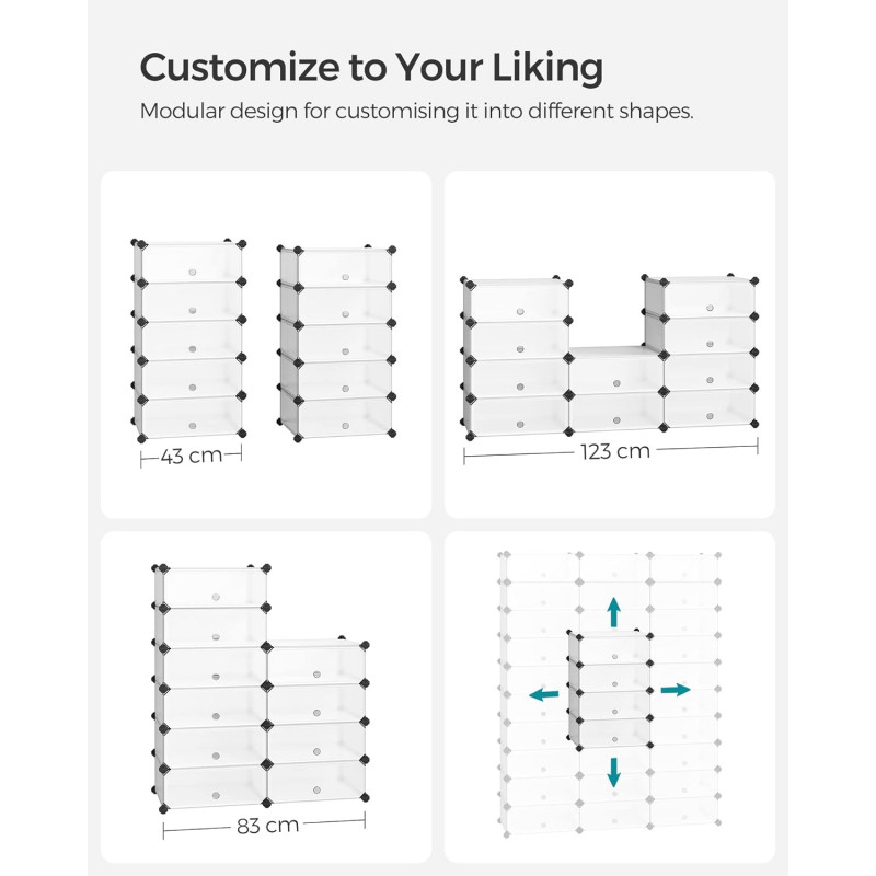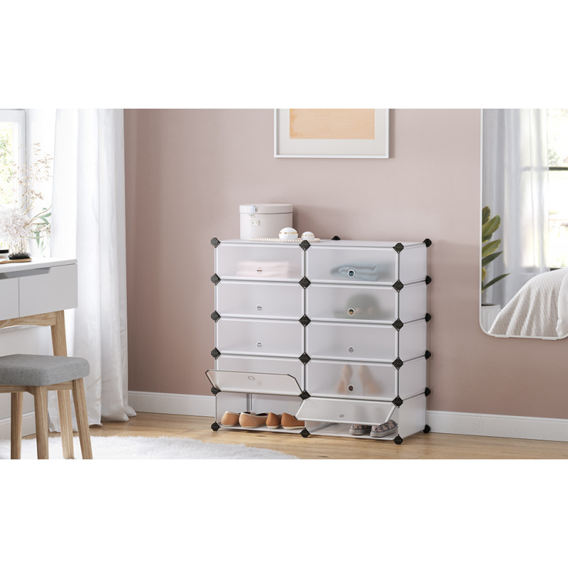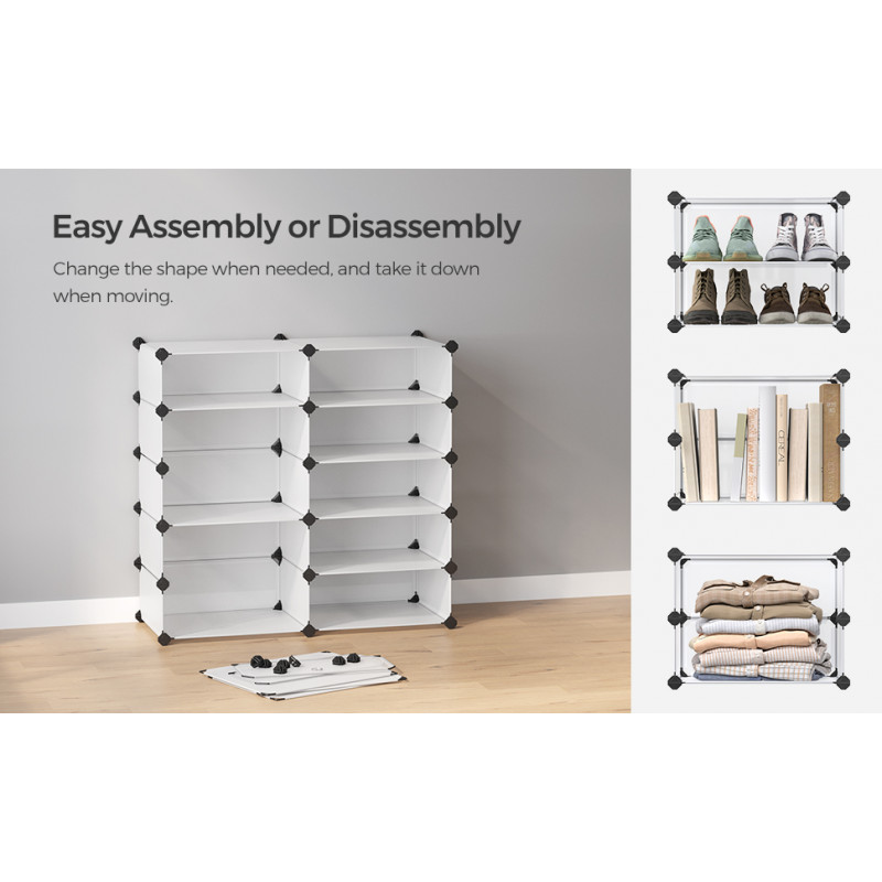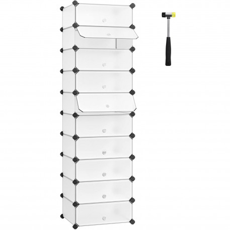 Capacitate maxima de incarcare statica: 10 kg/compartiment Despre acest articol Acest suport pentru pantofi pe 10 niveluri de 31 x 43 x 173 cm gazduieste aproximativ 20 de perechi de pantofi. Fiecare dulap de 40 x 30 x 17 cm este suficient de mare pentru adidasi, balerini, tocuri inalte sau cutii de pantofi.Datorita structurii modulare, ii poti modifica forma pentru a o adapta nevoilor si spatiului tau. Puteti imparti 2 rafturi mici sau le puteti extinde cu alte rafturi identice pentru si mai mult spatiu.Acest raft usor este usor de asamblat si dezasamblat. Vine cu un ciocan pentru asamblare usoara.Panourile din plastic PP de calitate sunt inodore si solide. Cu cadrul metalic si accesorii din plastic ABS, fiecare dulap suporta pana la 10 kg. Este hidrofuga si usor de curatat cu o carpa umeda.Versatil: Este un suport de pantofi pentru intrare, dar nu numai, il poti folosi ca sifonier pentru hainele tale in dormitor, ca organizator in camera de zi sau intr-un colt.