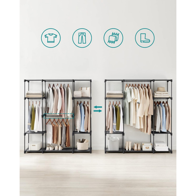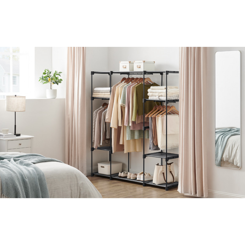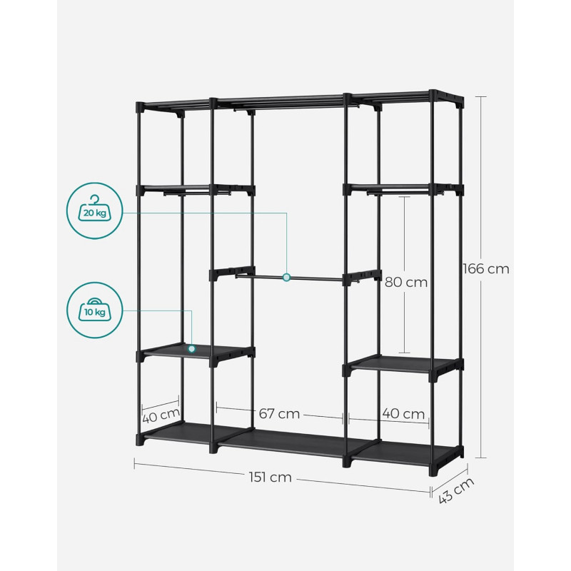 Scurta descriere: Dulapul portabil pentru haine este solutia practica pentru organizarea eficienta a garderobei in spatii diverse. Designul deschis permite acces rapid la haine, iar structura metalica robusta sustine articolele vestimentare pe termen lung. Ideal pentru dormitor, living sau spalatorie.