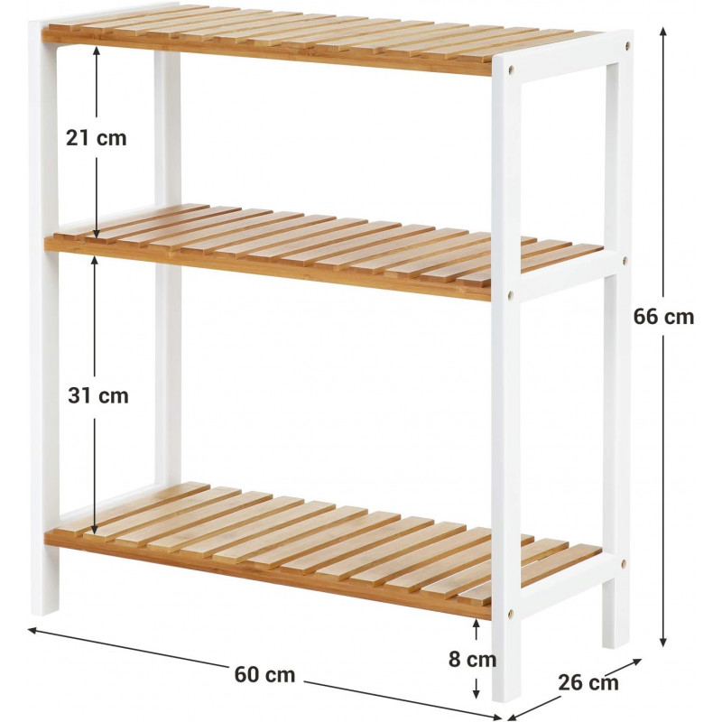 Scurta descriere Etajera din bambus cu 3 rafturi este o solutie versatila si durabila pentru organizarea spatiilor din casa. Designul sau minimalist si natural aduce un aer proaspat in orice incapere, fie ca este folosita in baie, pe balcon sau in hol. Fabricata din bambus rezistent, sustine pana la 10 kg pe raft si permite ventilarea obiectelor depozitate.