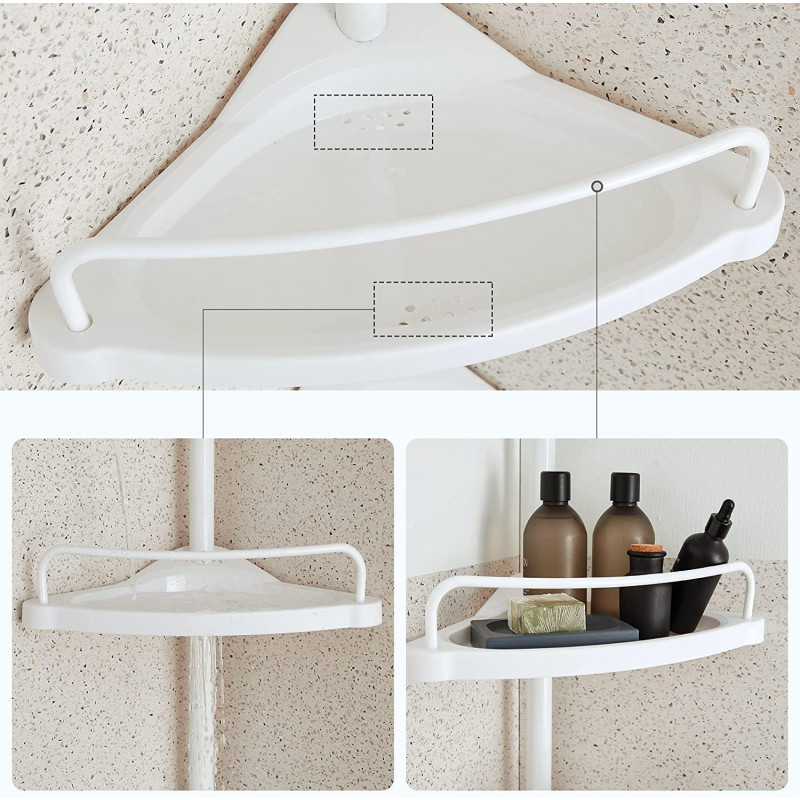 Scurta descriere: Organizeaza eficient spatiul din baie cu acest raft telescopic de colt, ideal pentru depozitarea produselor de ingrijire. Se monteaza usor fara gaurire si se adapteaza diferitelor inaltimi ale incaperii.