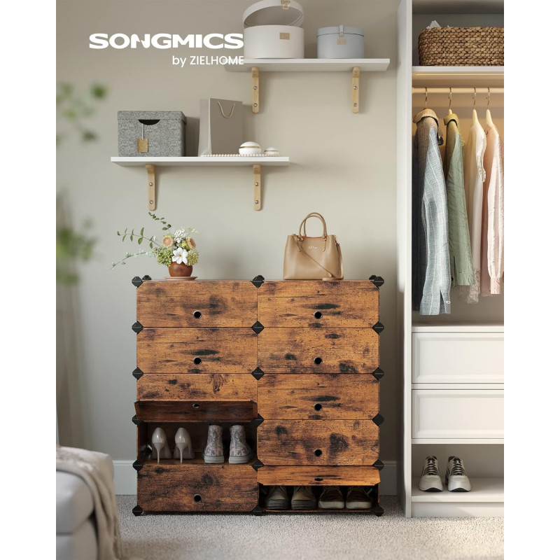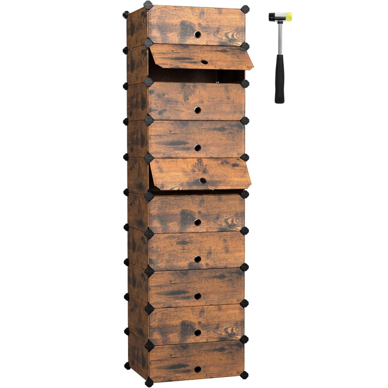 Scurta descriere: Etajera SONGMICS cu 10 niveluri este solutia ideala pentru depozitarea a pana la 20 de perechi de pantofi. Cu un design modular DIY, poate fi configurata in diferite forme si folosita in mai multe incaperi. Realizata din materiale rezistente si impermeabile, include usa pentru protectie si accesorii utile pentru asamblare si stabilitate.