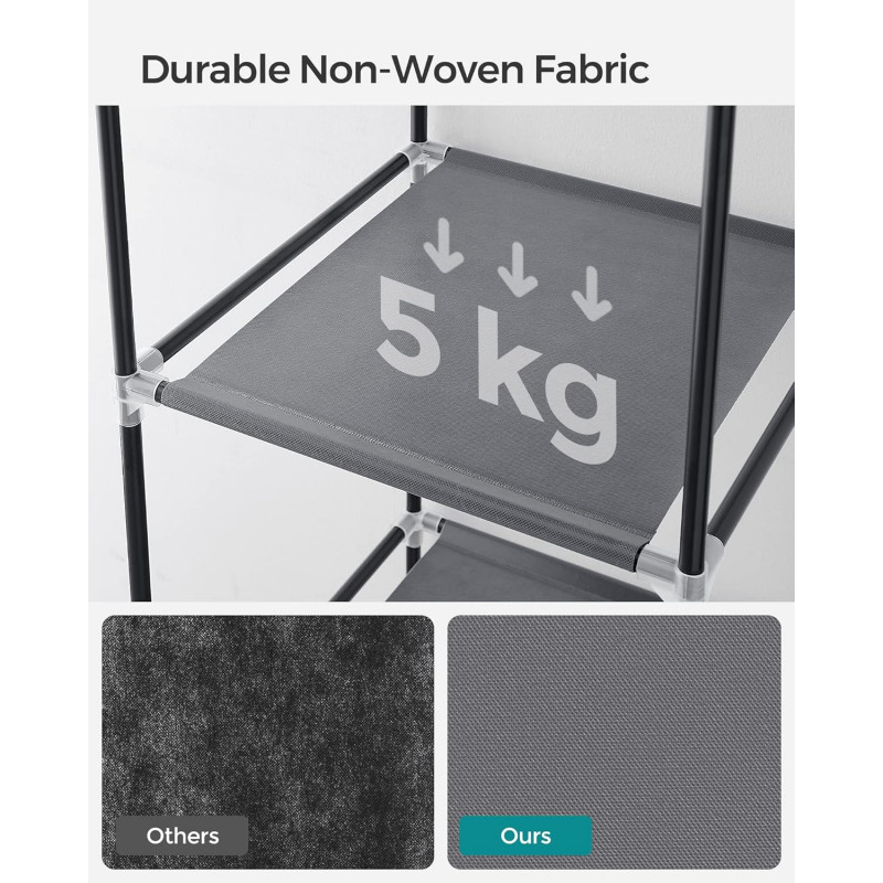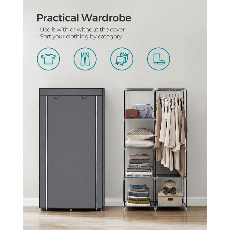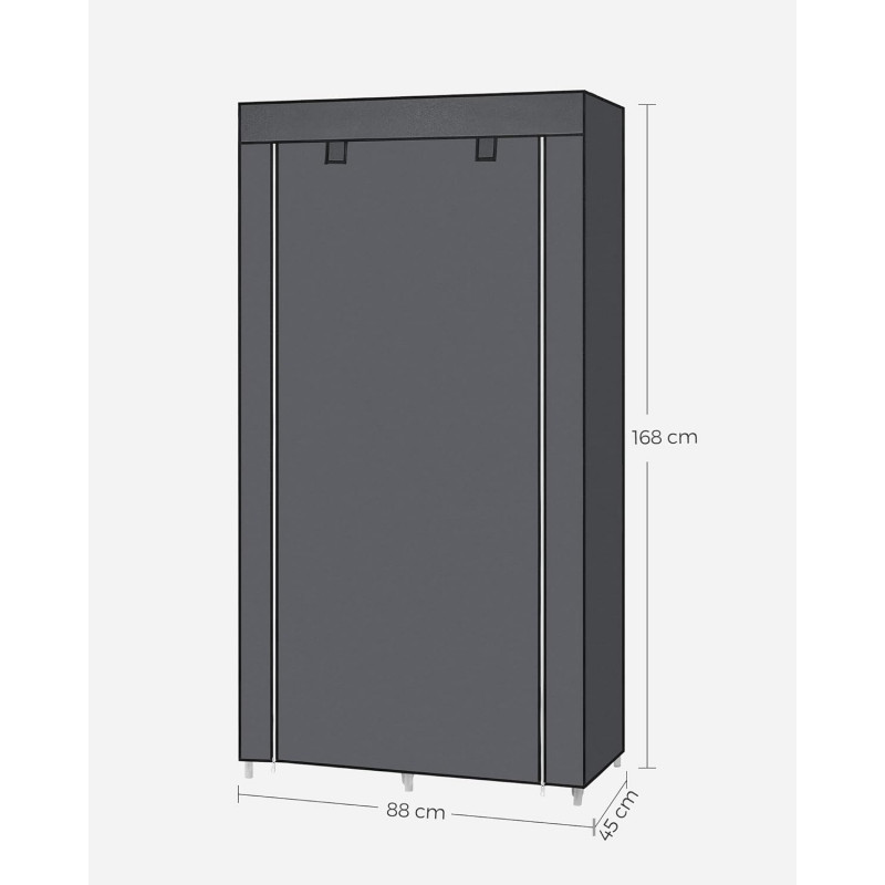 Scurta descriere: Dulapul textil este o solutie practica pentru organizarea hainelor in spatii mici sau temporare. Include rafturi pentru depozitare si zona pentru umerase, oferind acces rapid la toate articolele vestimentare.
