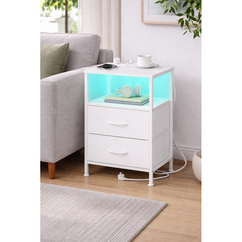 Scurta descriere Noptiera SONGMICS din colectia BELLAH imbina designul modern cu functionalitatea avansata. Este echipata cu statie de incarcare completa si iluminare LED controlata prin aplicatie, ideala pentru un dormitor modern. Ofera spatiu generos de depozitare si o structura stabila pentru utilizare zilnica.