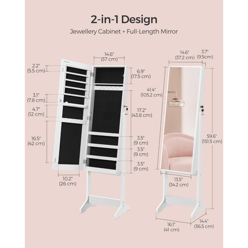 Inhalarea sau ingerarea acestor piese prezinta un risc fatal. Despre acest articol Admirati-va tinuta din cap pana in picioare in oglinda de lungime intreaga a acestui fermecator dulap de bijuterii. Designul sau cu rama ingusta ofera o suprafata de vizualizare mai larga si va permite sa va examinati tinuta si mai bine.